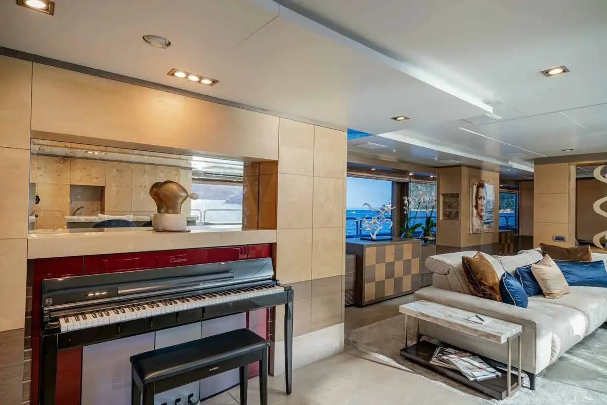 Her design credentials are clear: exteriors by Stefano Righini, interiors recently reimagined with a fresh, tonal palette, and polished teak underfoot. The result is a charter platform that feels elevated but never ostentatious: refined, quiet, enduring.