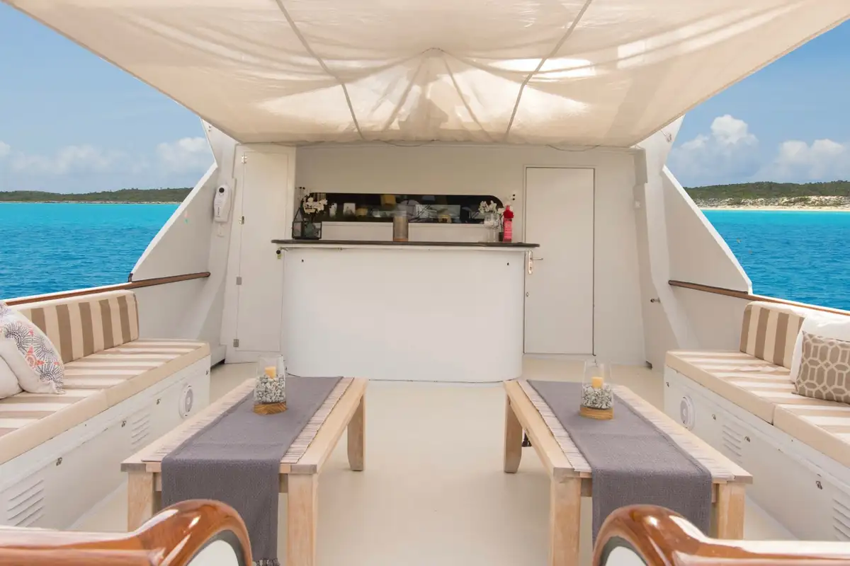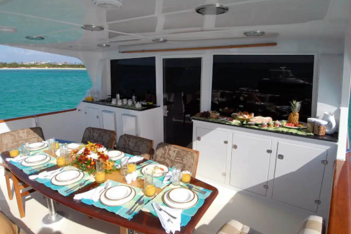 A perfect arc of sand, all but inaccessible by land, fire up the tender, explore the reef, then enjoy a BBQ on the beach with the sand between your toes.