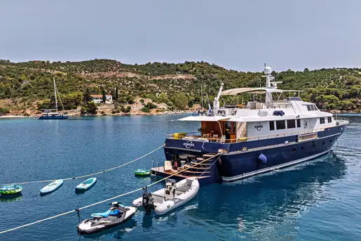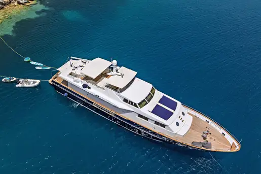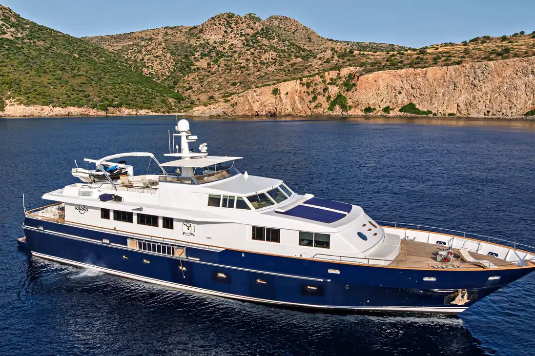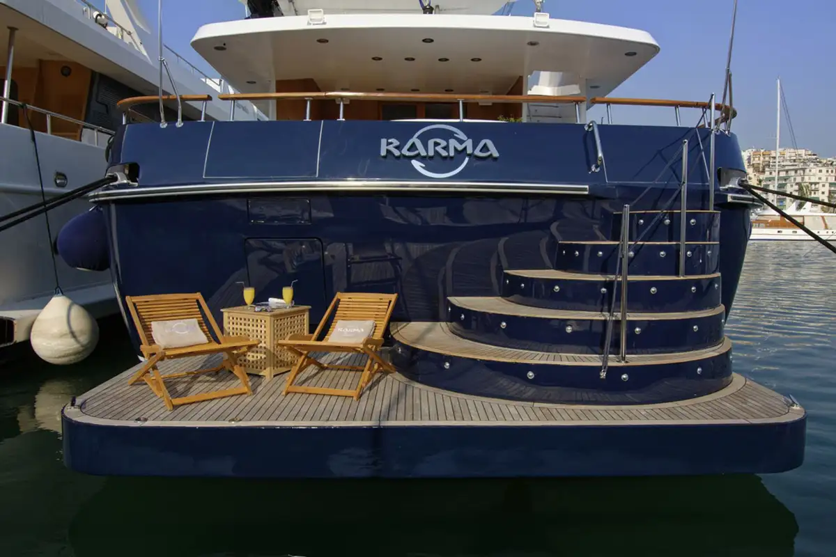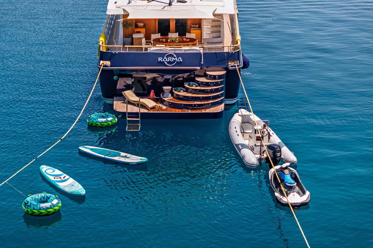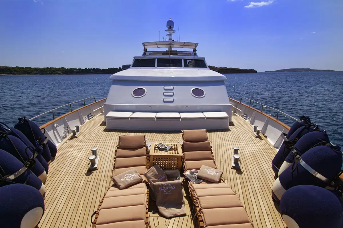 KARMA was built in 1987 by Picchiotti in Italy and refitted in 2019, she measures 30.50m (100ft) and can accommodate 11 guests, in five cabins.