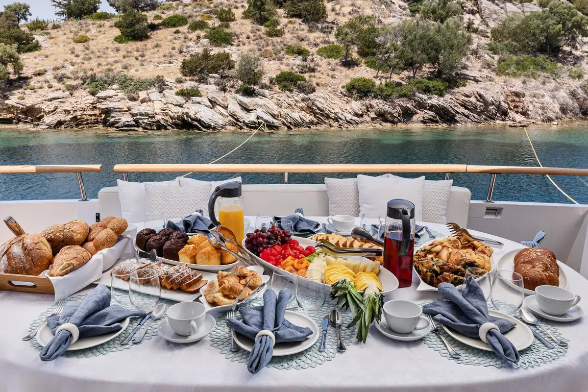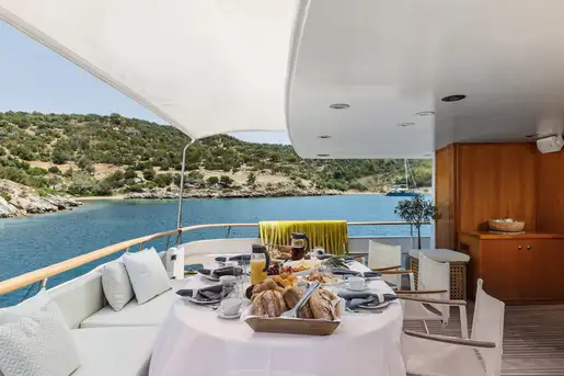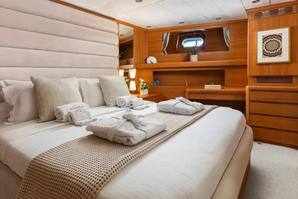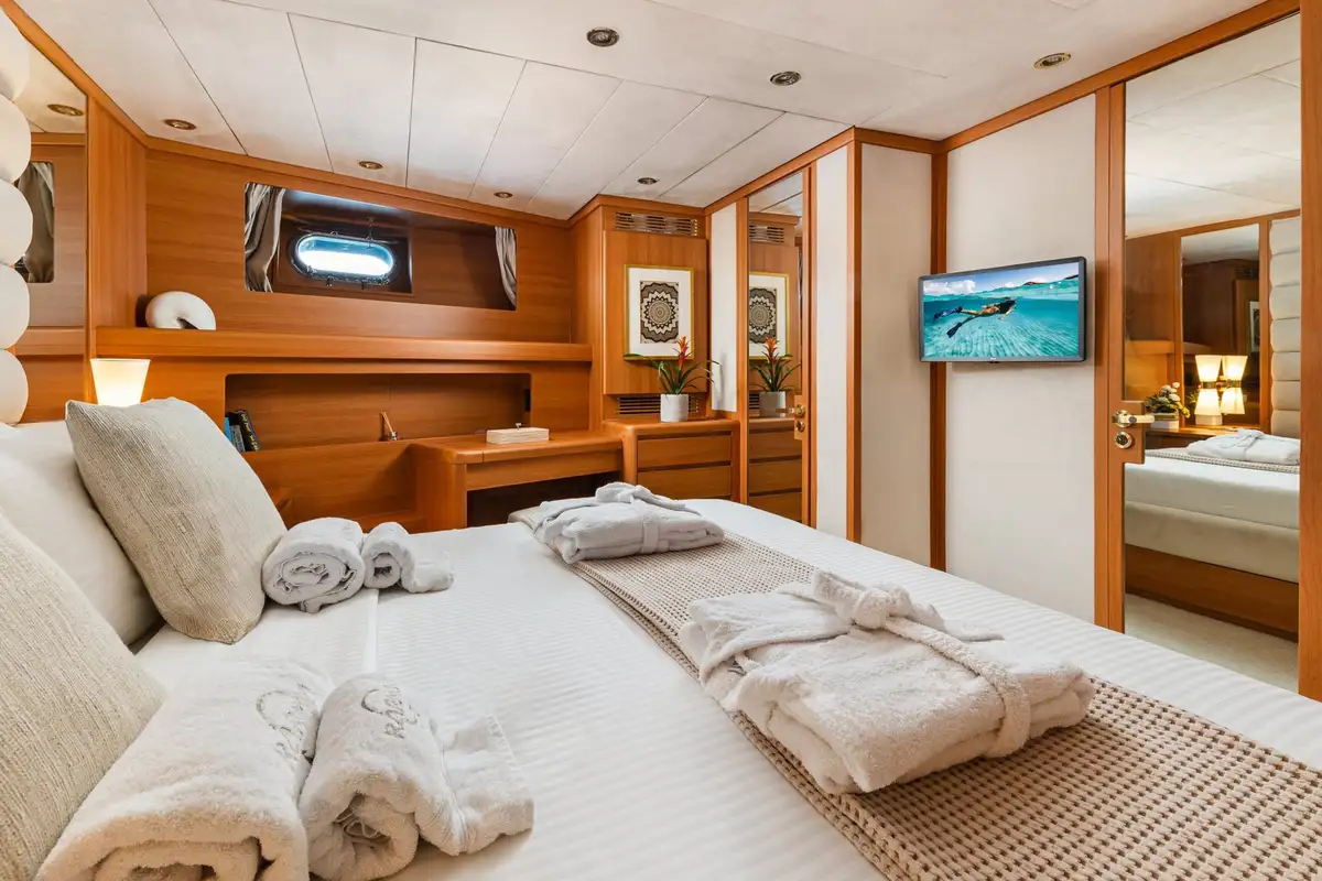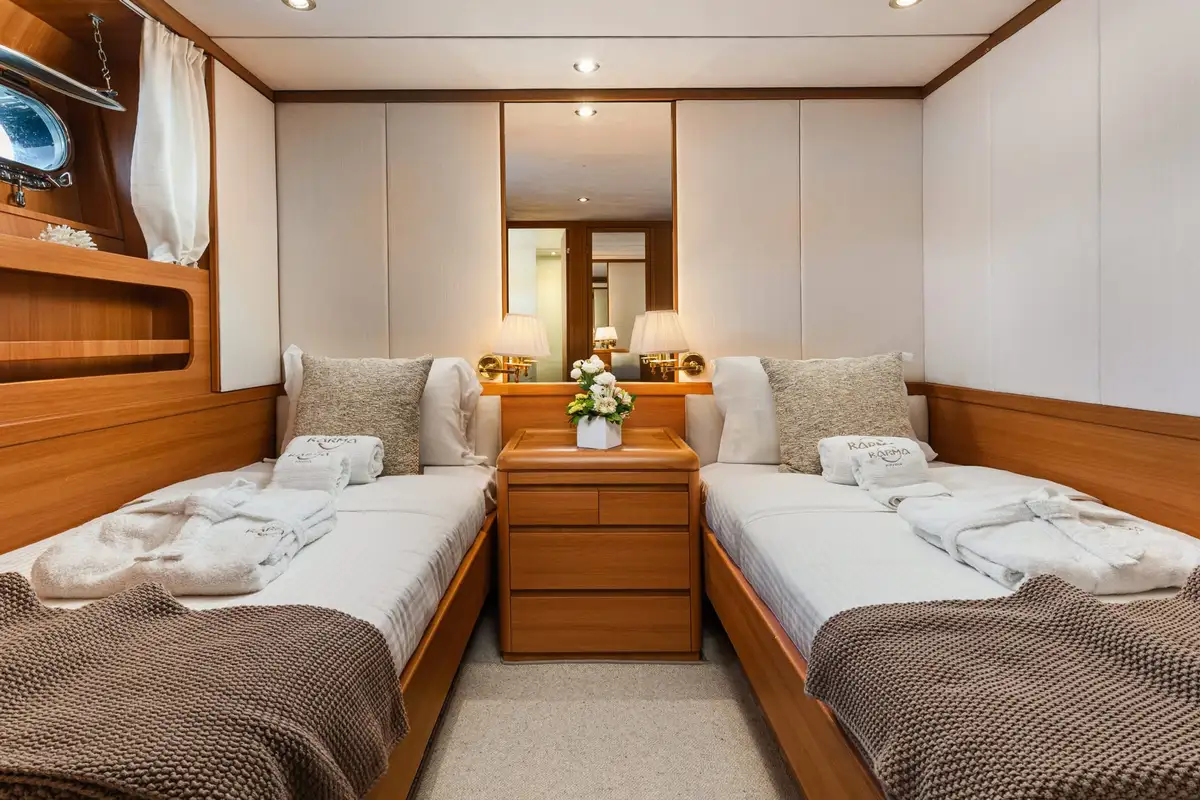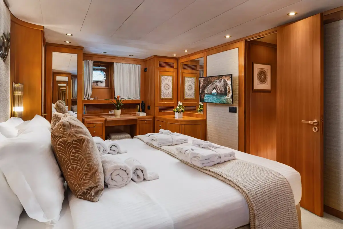 KARMA was built in 1987 by Picchiotti in Italy and refitted in 2019, she measures 30.50m (100ft) and can accommodate 11 guests, in five cabins.