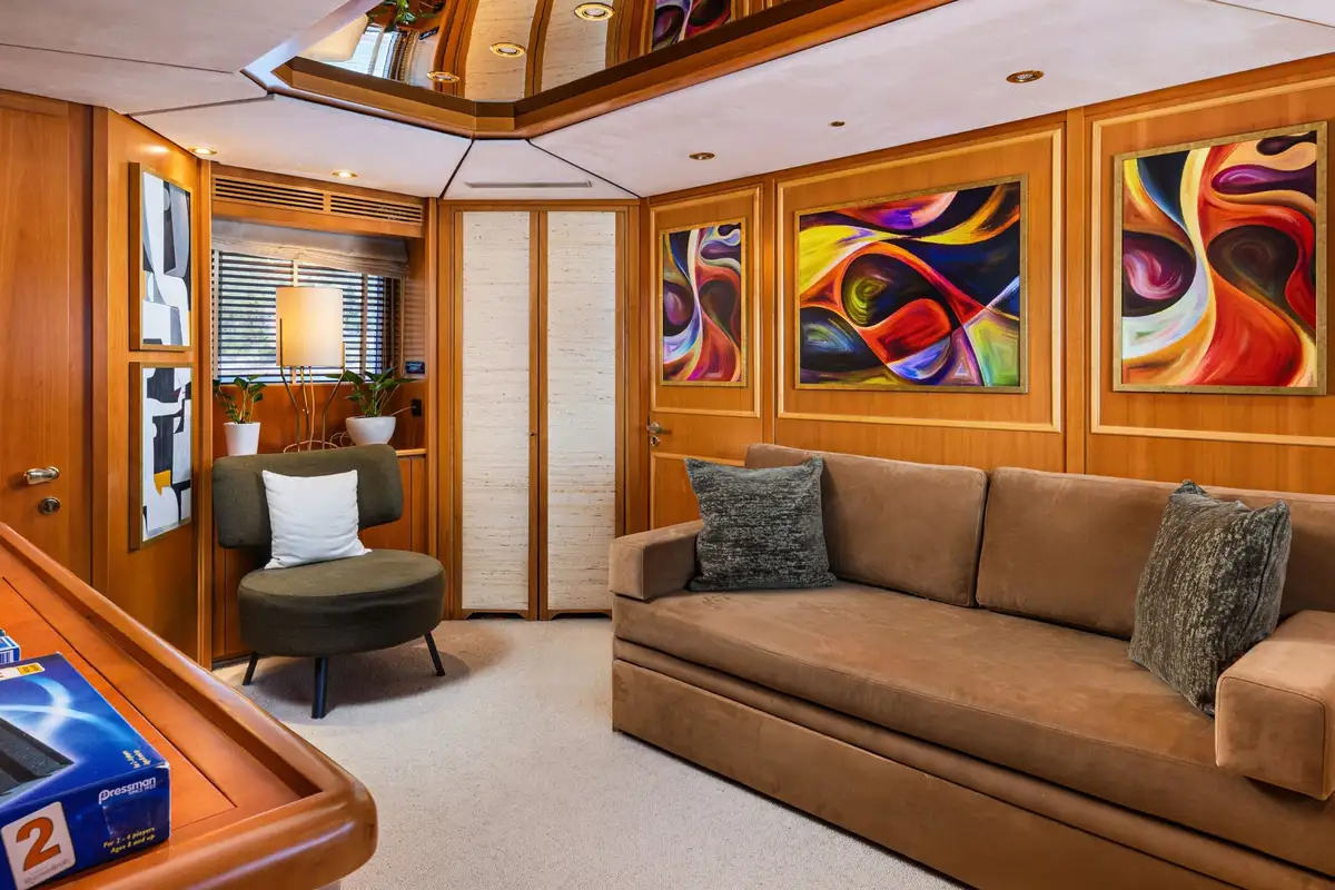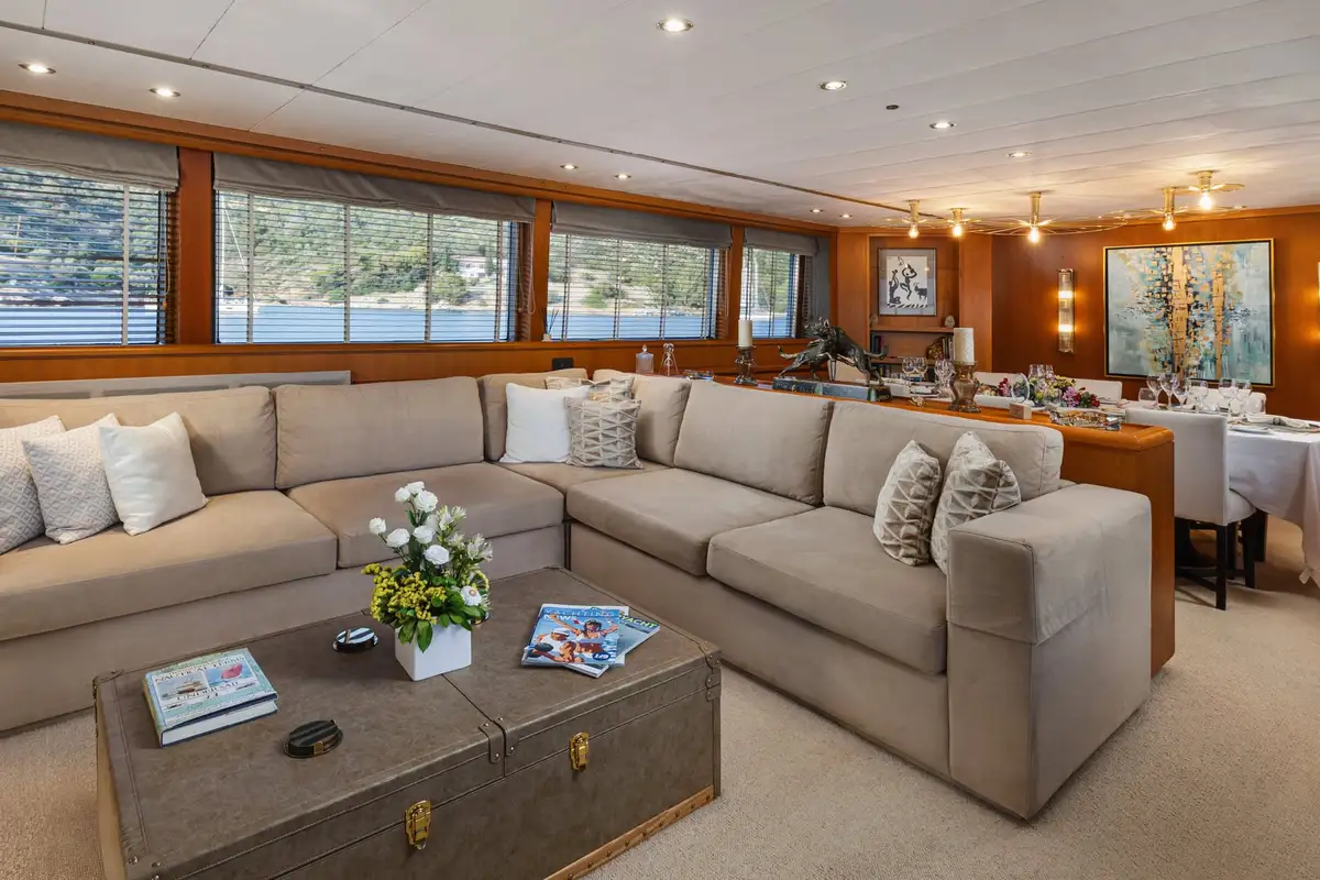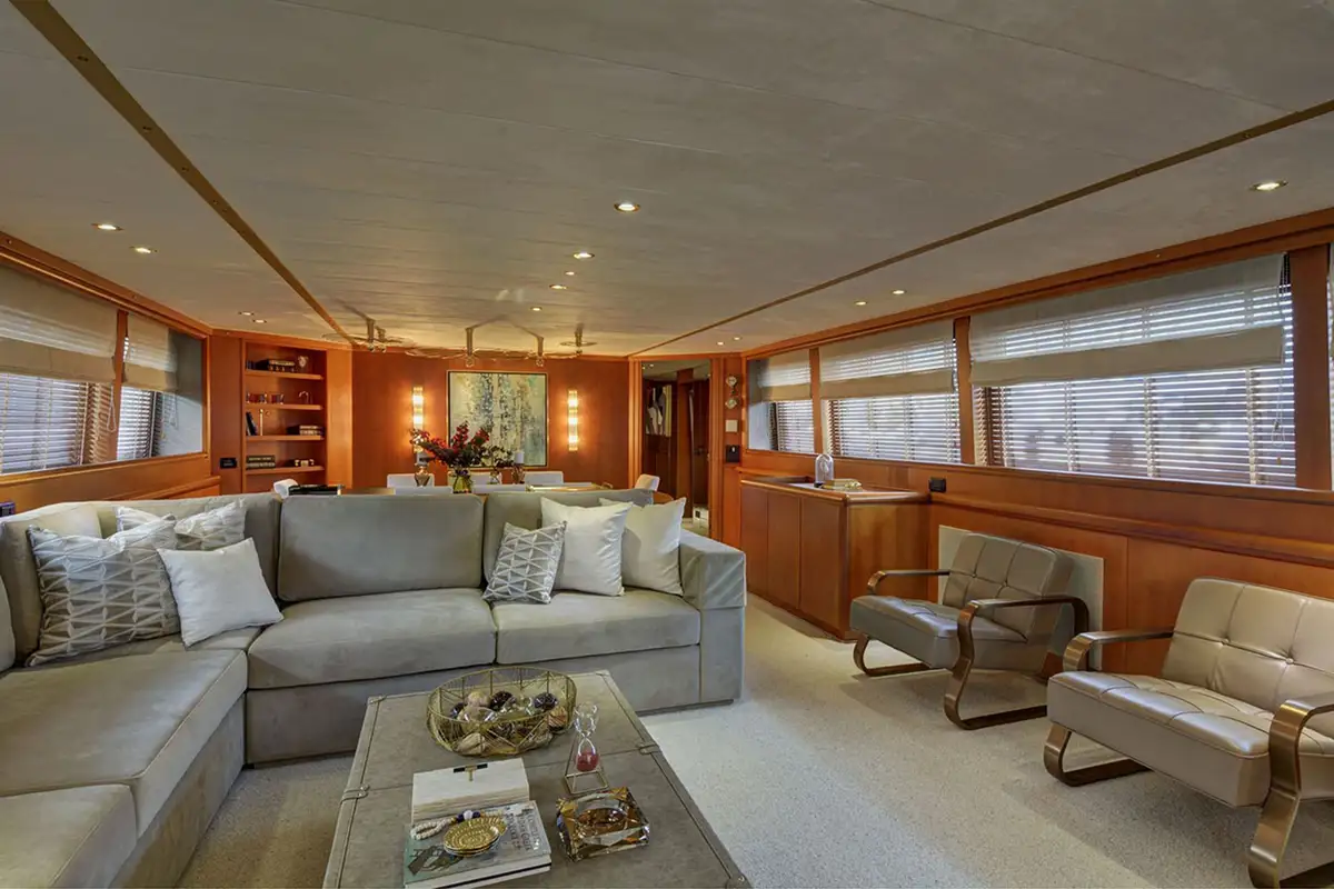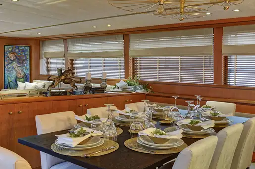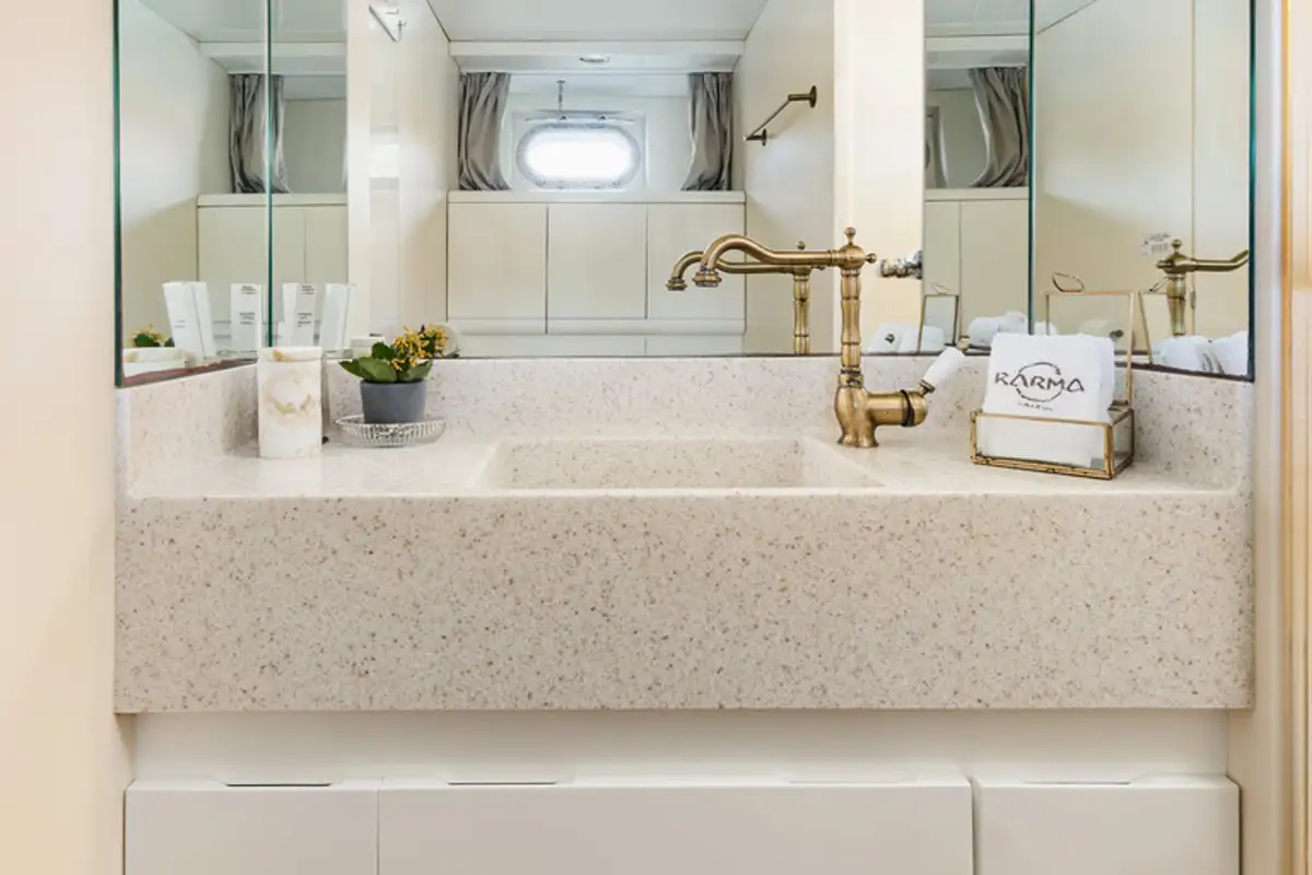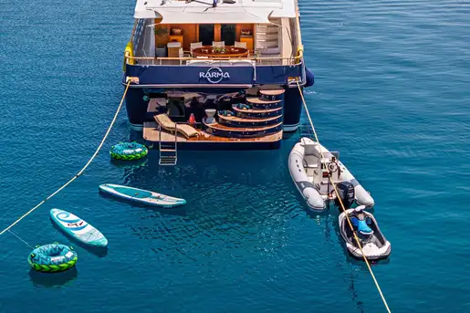 KARMA comfortably cruises at 14 knots, reaches a maximum speed of 18 knots with a range of up to 1,125 nautical miles from her 30,000 litre fuel tanks at 15 knots. Her low draft of 1.49m (4.1ft) makes her primed for accessing shallow areas and cruising close to the shorelines.
