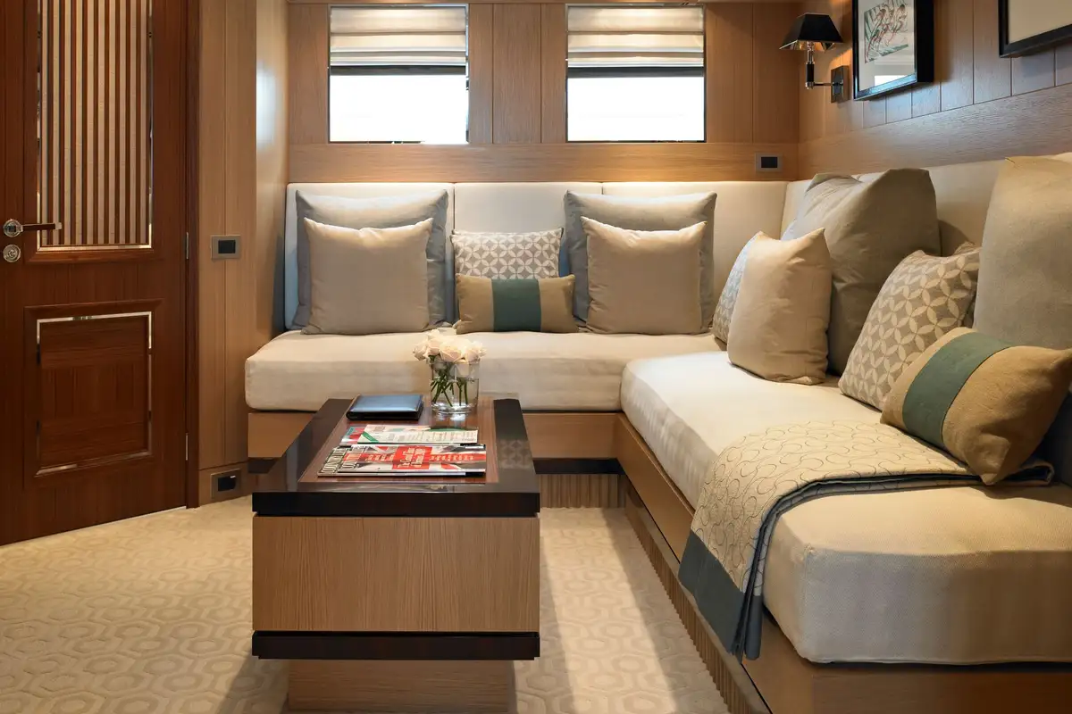 KATHLEEN ANNE has an elegant, contemporary profile. Her high forward bow reflects the overall clean lines of the vessel. The modern exterior comes from the drawing boards of Guido de Groot complemented by her warm and comfortable interior by Bannenberg Design. Her owner, who was closely involved in the project throughout the build, has succeeded in creating the very definition of a family yacht.