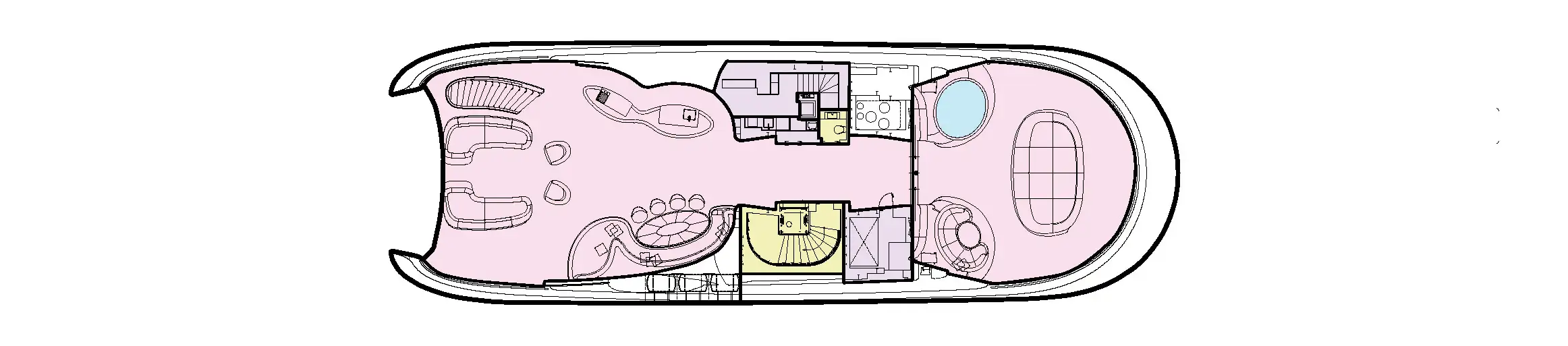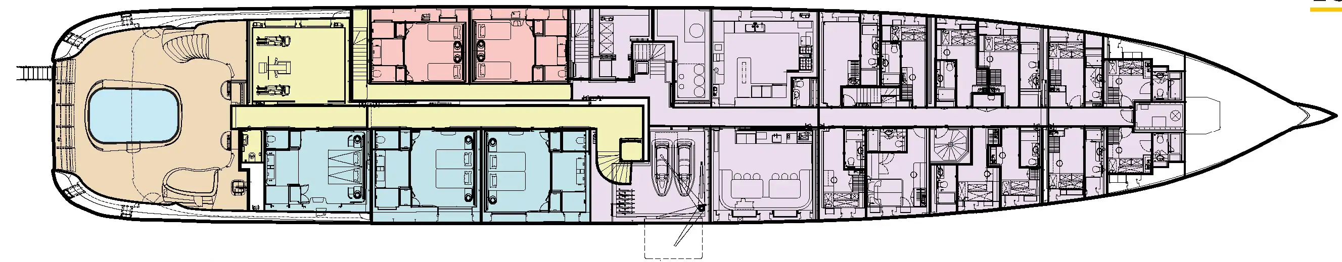 - 6m glass-fronted pool on the lower deck aft