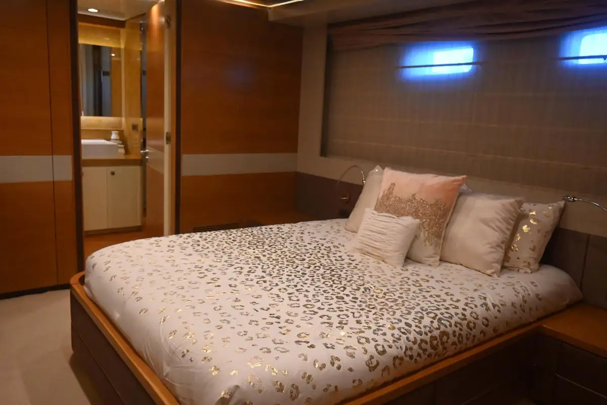 - Full-beam main deck master stateroom naturally lit by 2 expansive skylights