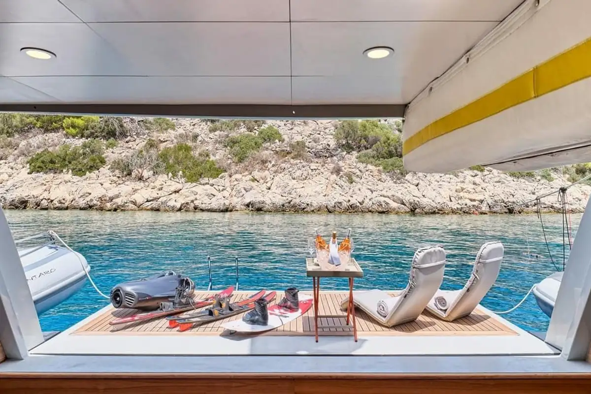 Guests can enjoy the use of KINTARO’s swim platform with easy access to the water and there is a range of watertoys including a two seater waverunner and a SeaBob.