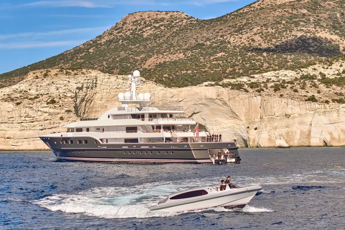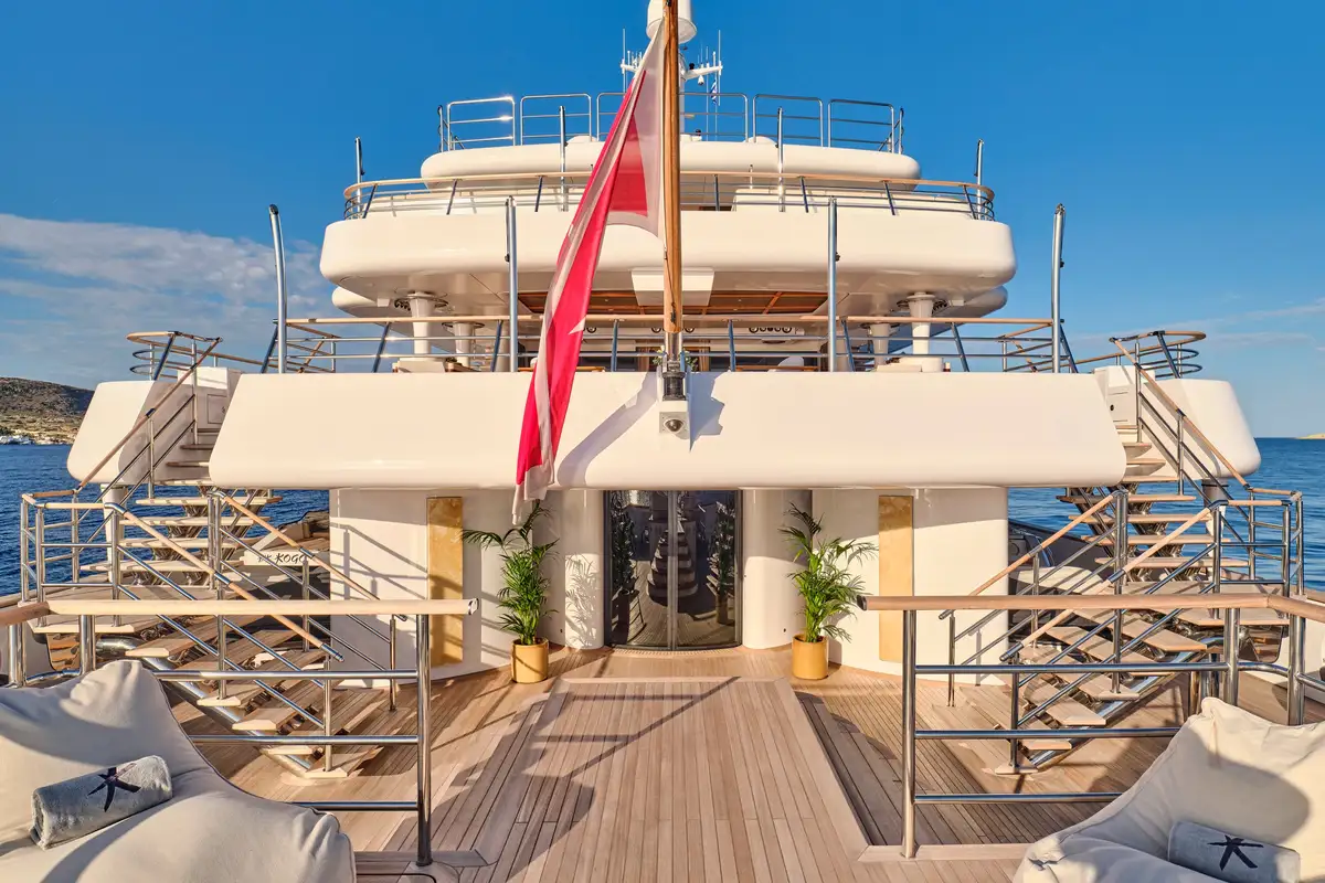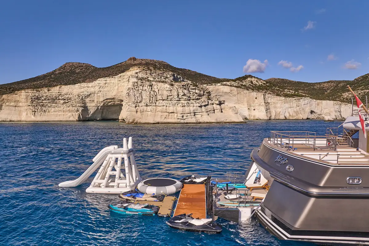 With a spacious beach club, an extensive selection of water toys, and a fold-down swim platform, KOGO is built for adventure. Whether you’re diving into crystal-clear waters, paddleboarding at sunrise, or hosting an elegant cocktail party on deck, your days on board are yours to design. And, attended to by a crew of 21, every detail is meticulously tailored to your desires. From seamless service to curated experiences, KOGO promises a charter like no other.