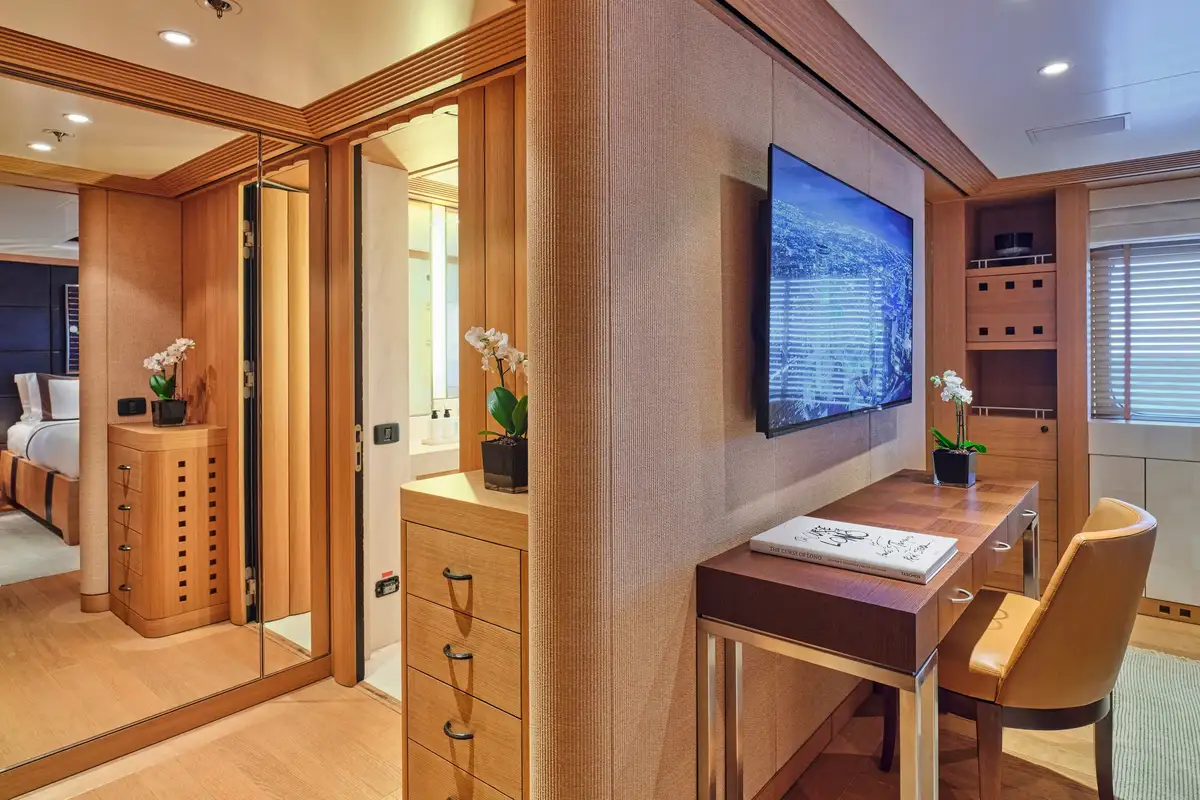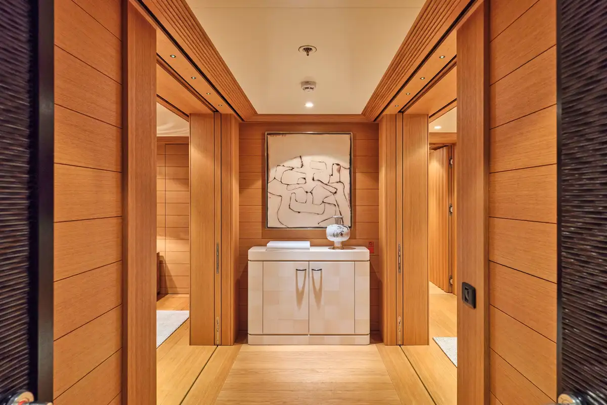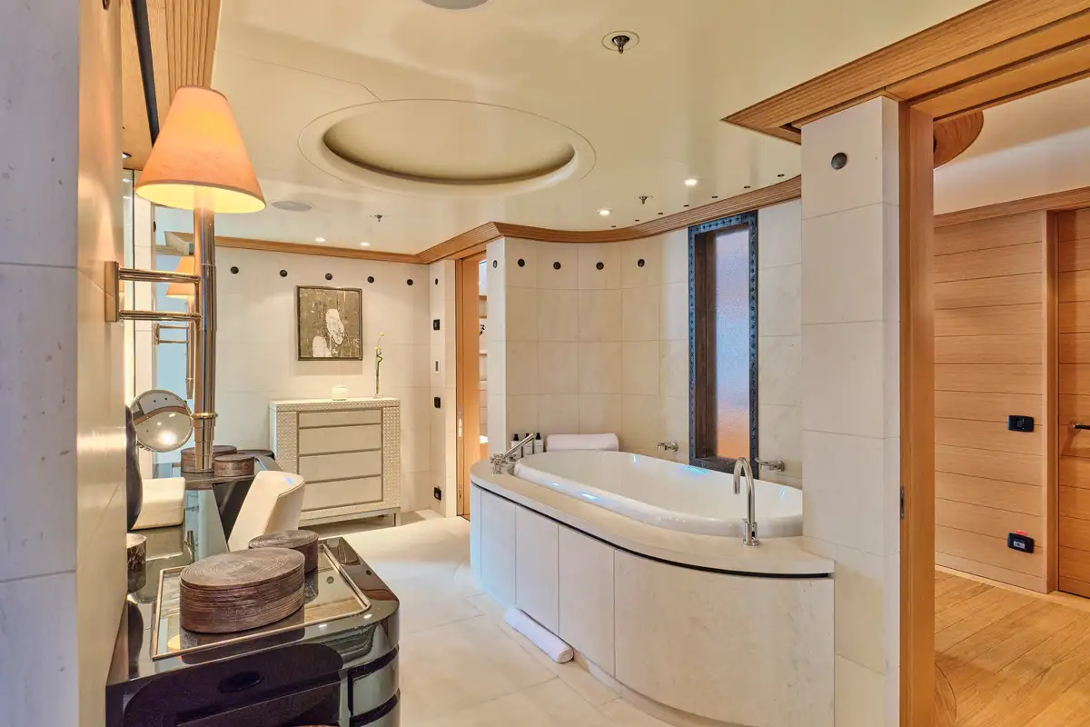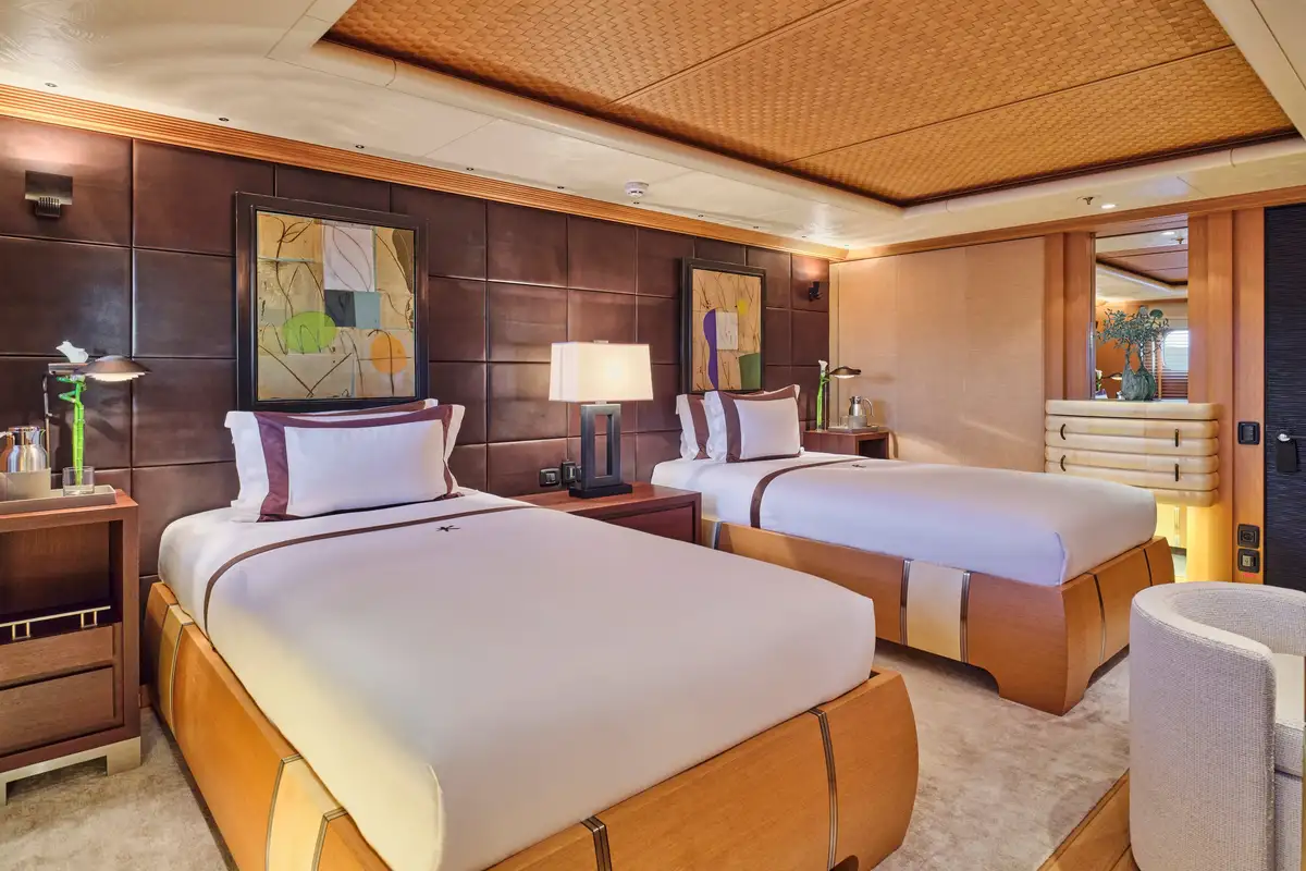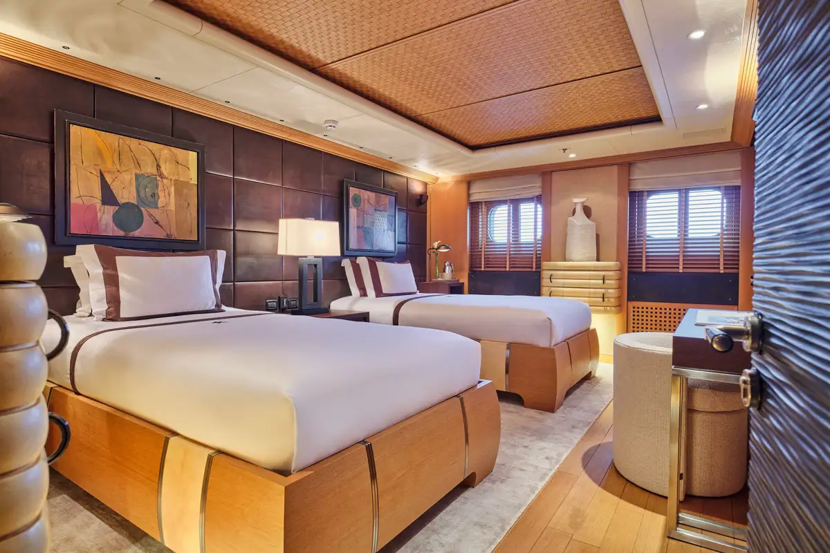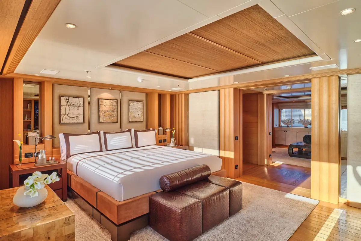 The primary charter guest will enjoy find respite in the opulent master suite – a vast, light-filled sanctuary complete with a private lounge and study area, his-and-hers walk-in wardrobes, and en suite bathroom. Guests will enjoy equal comfort in KOGO’s six beautifully appointed cabins – two double cabins on the main deck, and two further double cabins and two twin cabins on the lower deck – ensuring that every moment of rest is as indulgent as the days spent exploring.