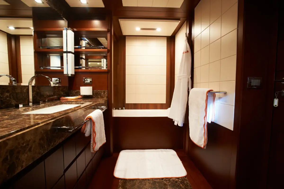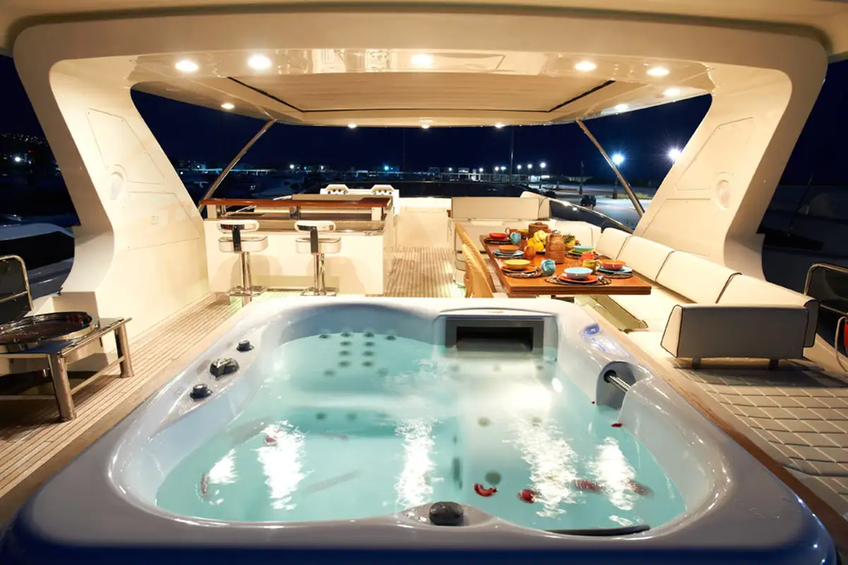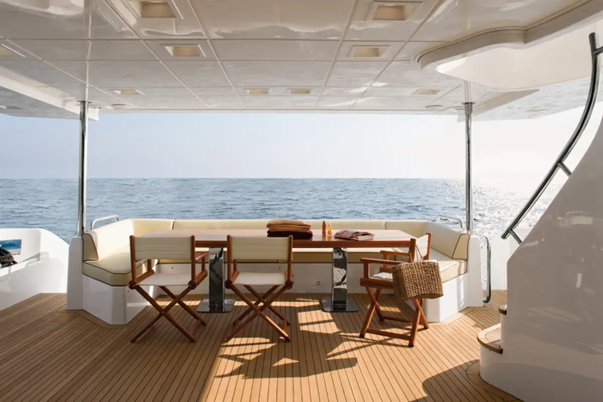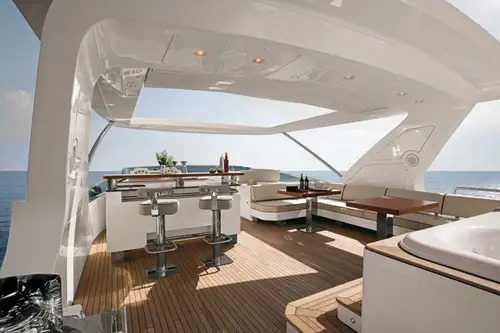- Expansive deck space with multiple areas for relaxation, featuring a large foredeck with optional sunshade/sunpads