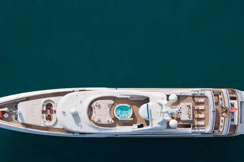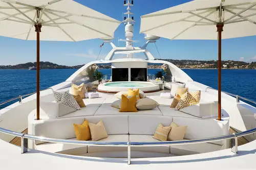 Previously named MIMI, LA BLANCA's huge deck spaces include an expansive sun deck with a 12-person jacuzzi compete with swim-up bar, an enclosed gym, and sun pads fore and aft for post-workout sunbathing. There's open air dining on the upper deck aft and additional sun pads on the foredeck for snacks and sundowners. The main deck aft also includes a large lounge area with versatile space for yoga, games or just relaxing with a good book.
