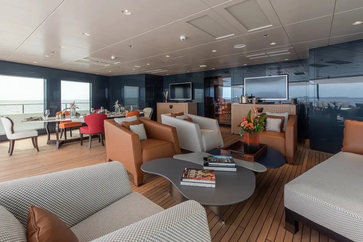 Wake in the bay of a tropical island and head to the gym for a workout with sea views, followed by time in the hammam and energising ice fountain shower. Then join the group for breakfast in the sky lounge, with its sliding doors opened up to the aft deck for a truly indoor-outdoor mood, while you finalise the day’s plans.