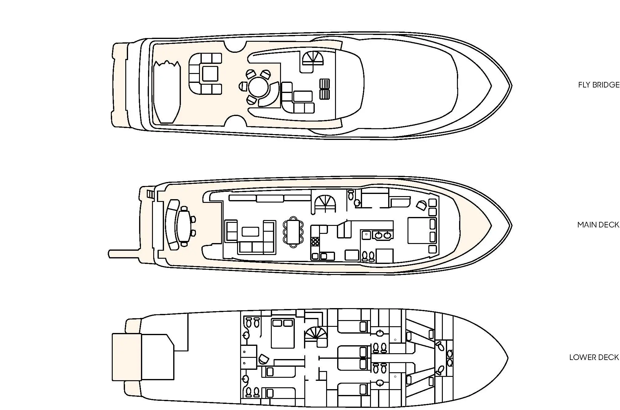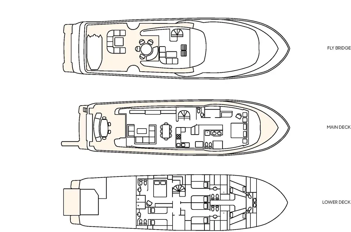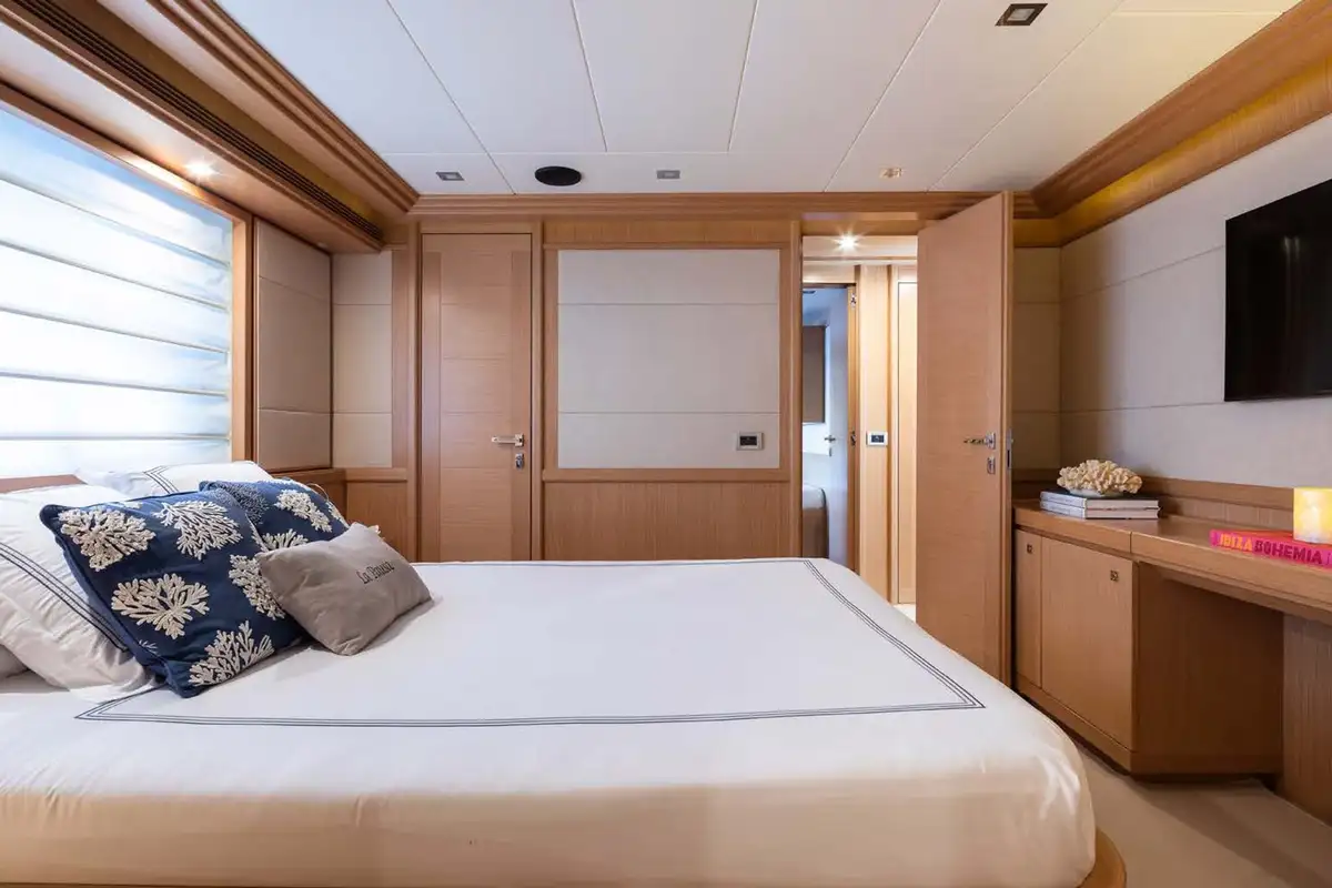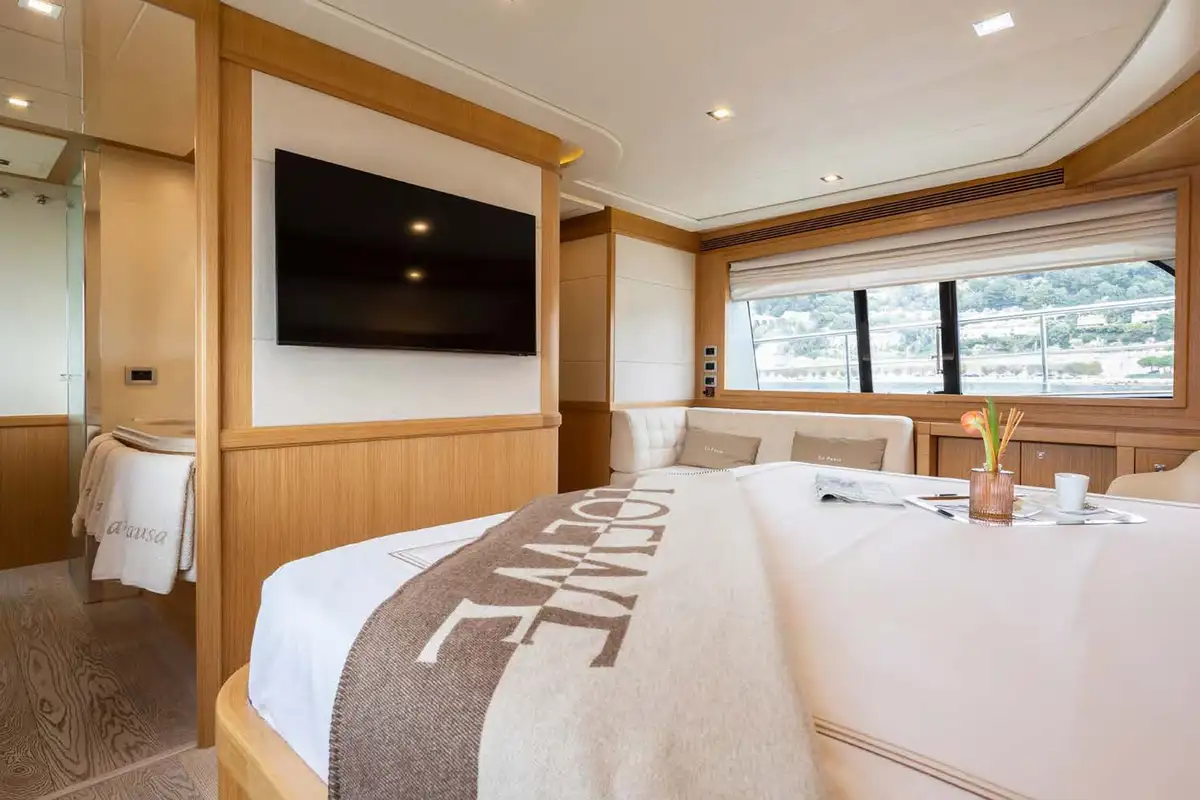 LA PAUSA comfortably accommodates 10 guests and can welcome up to 11 guests in total. The cabin configuration comprises the master suite, which is located on the main deck, a VIP double, and three twin cabins (each with an additional Pullman berth). All the accommodation is extremely spacious, and all cabins are en suite.