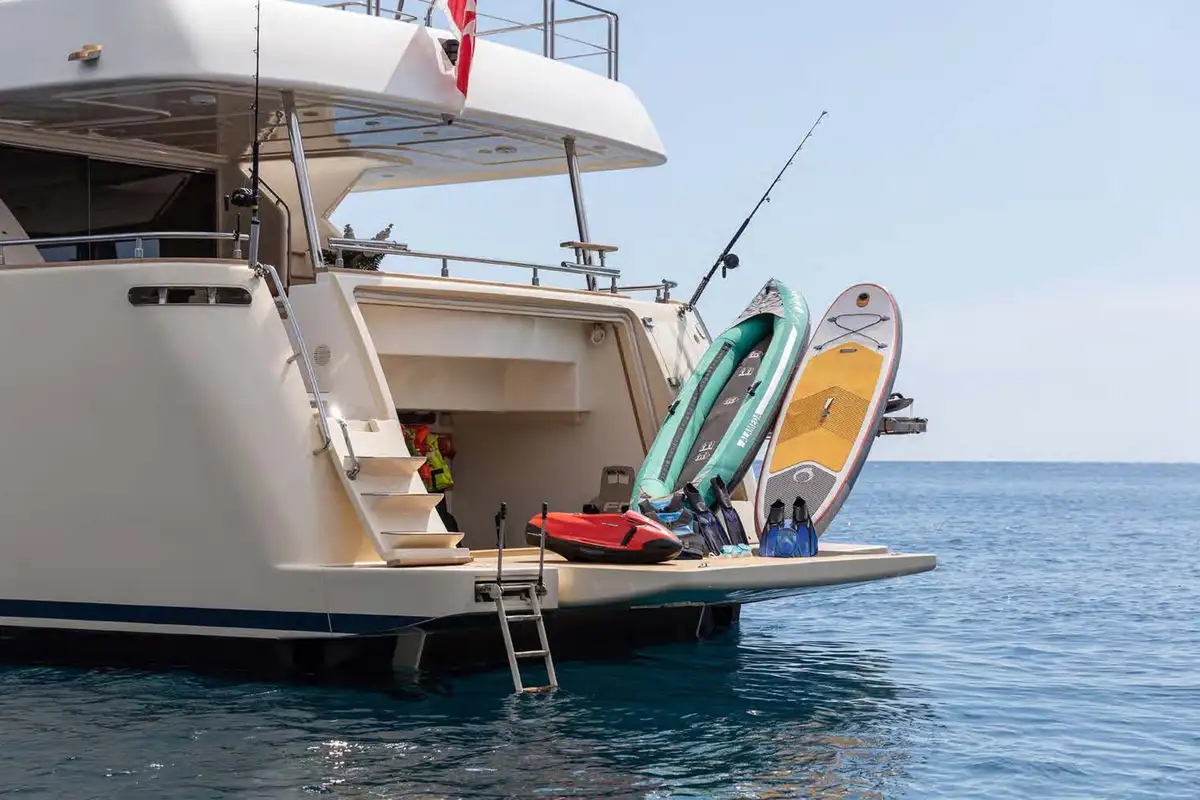 LA PAUSA is equipped with a great selection of water toys, including a SeaBob and Electric foil boards, all of which are easily accessed via the aft swim platform.