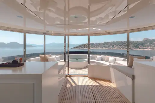 When underway, take the opportunity to join Captain John on the bridge. From the leather-clad dash and wheel to the driving seats in the same finish, this Instagrammable space is the control centre of the yacht so go to see how it all works – and even take a turn at helm under John's supervision.