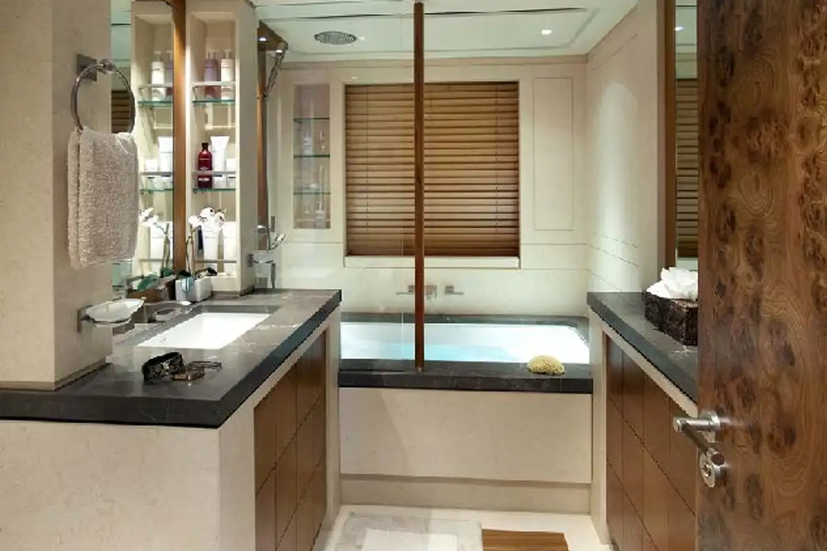 When it's time to retire, LADY BRITT’s well-appointed, flexible accommodation will suit all charter guests' requirements. The master suite is located on the main deck, while a further 10 guests can be accommodated in six large lower deck suites. The stand out is the ability to convert the two VIP double cabins into a combined full-beam suite to be enjoyed.