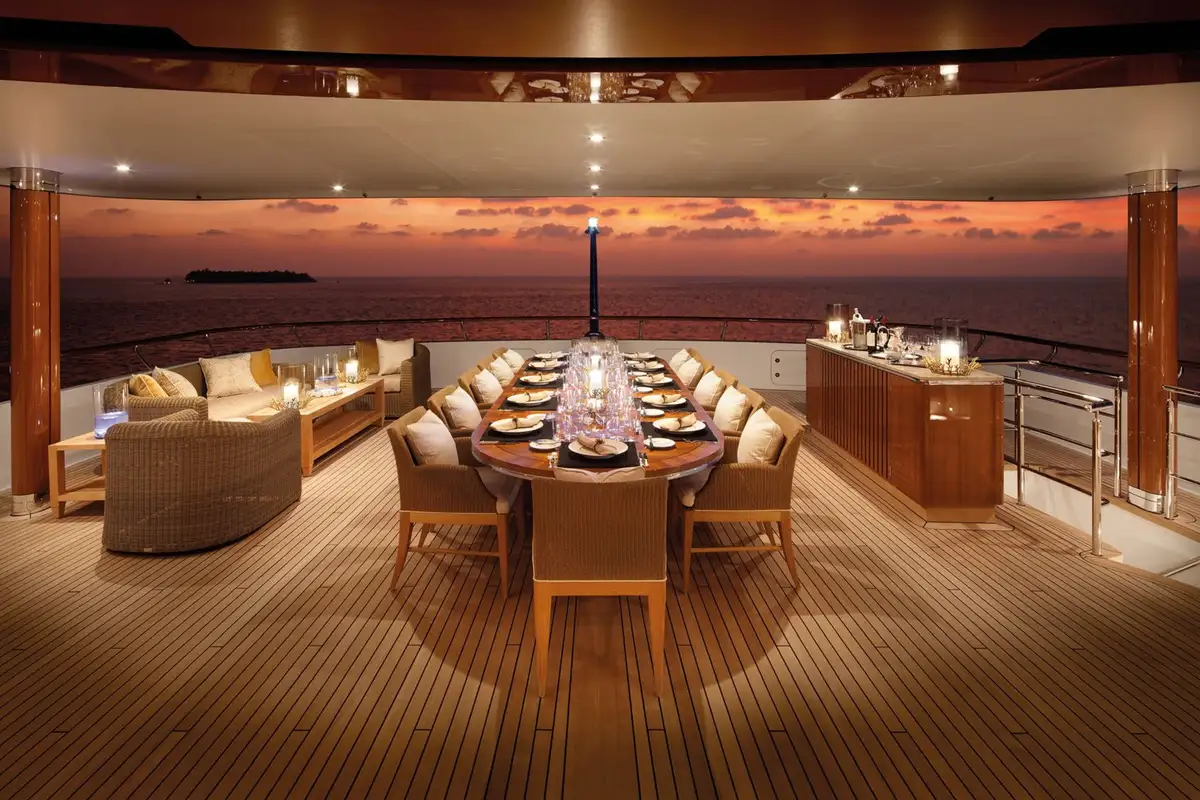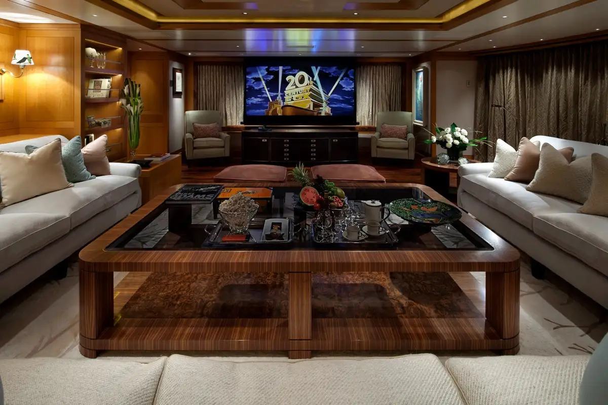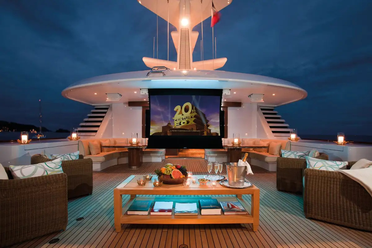 Cuisine is one of the most important elements in a superyacht charter and this is another area in which LADY BRITT excels. With her Michelin-star standard chef conjuring up tasty, nutritious and healthy dishes, seasonal produce is the order of the day. One evening, guests may choose to eat with their toes in the sand, taking advantage of her amazing beach set-up, with pavilions and sofas. Another evening might be an occasion for canapes and a five-course degustation. The luxury of choice for dining and locations whilst on board LADY BRITT are truly superb. With DJ equipment for a party on board, guests can dance the night away under the stars, or sit back and relax at the indoor or outdoor cinema screening from the regularly updated 1,500-title film library.