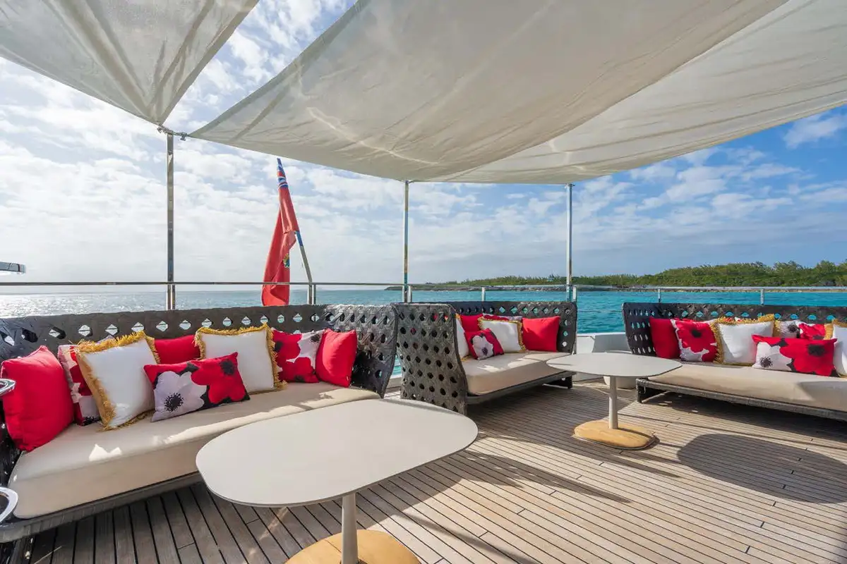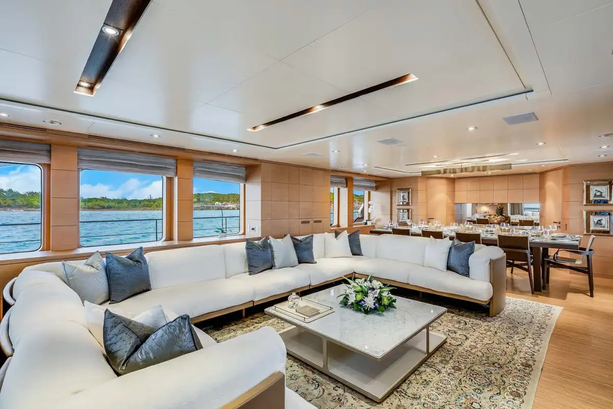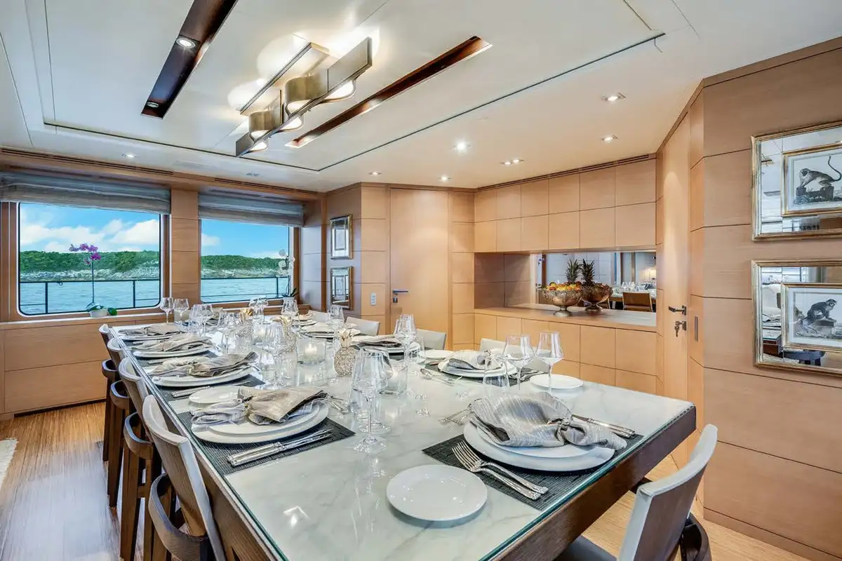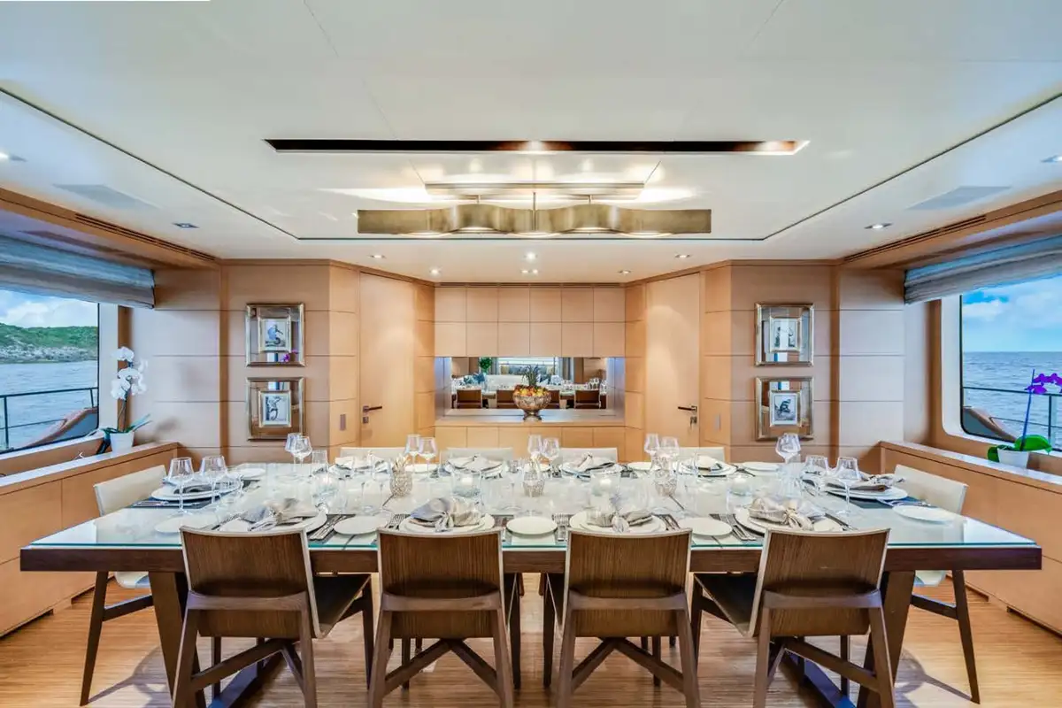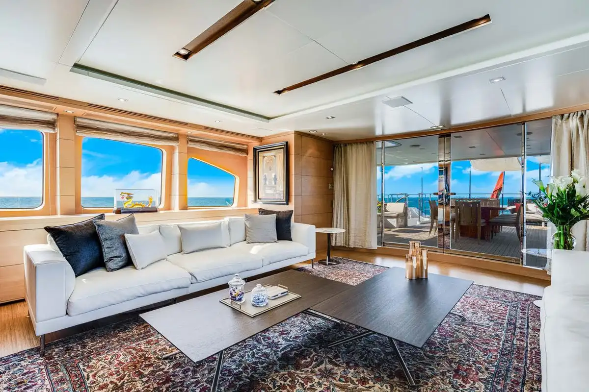The bright and open salon and sky lounge are perfect for lounging and mingling with family and friends, offering splendid ocean vistas and plush seating arrangements. Whilst the beautiful dining area features a large table for an elegant dinner destination. For the fitness enthusiasts, LADY H's air-conditioned gym is a haven for health and wellness. Complete with weights, bands, and Peloton, the gym is adjoined by a full powder room featuring a large steam shower, a welcome respite for those looking to unwind and de-stress. LADY H's expansive deck spaces are a haven for relaxation and indulgence. The sun deck features a large Jacuzzi and loungers perfect for basking under the warm rays of the sun. Enjoy fine dining experiences on the Bridge deck aft, featuring a shaded long dining table and ample seating arrangements. This is the perfect location for fabulous al-fresco meals, providing an idyllic setting for a blissful culinary adventure.