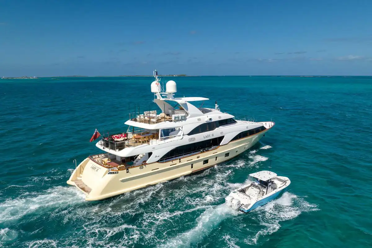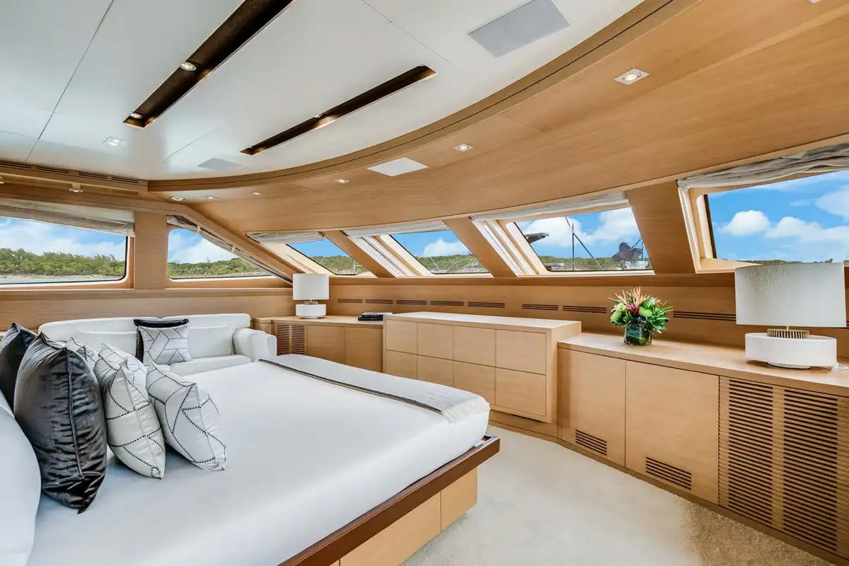 Indulge in an exquisite charter experience aboard the LADY H, a striking tri-deck Benetti Classic designed by Francois Zuretti. Radiating an inviting contemporary ambiance, this luxurious yacht boasts bright and airy accommodations for up to 12 guests across five refined staterooms. Located on the main deck, the lavish full-beam master suite treats guests to breathtaking 180-degree panoramic views of the ocean. She has an ample walk-in closet and en-suite bathroom, complete with dual sinks and a large shower. The four spacious staterooms below deck boast two VIP doubles and two twin staterooms, each with additional Pullman bunks, and lots of natural light. Guests are treated to sumptuous and commodious bathrooms with wide showers, offering a refreshing and tranquil escape.