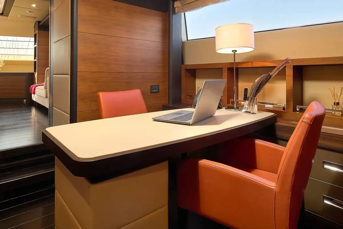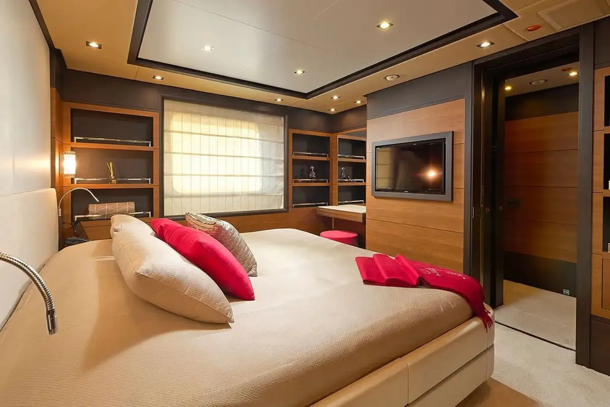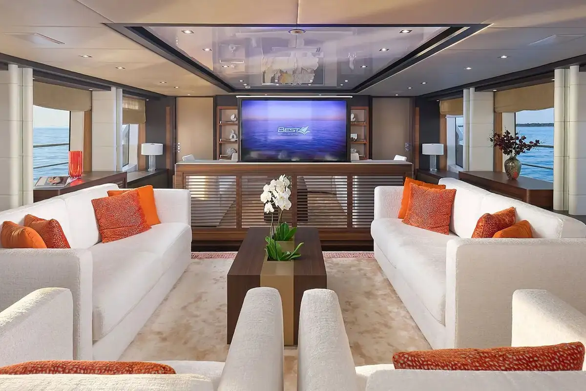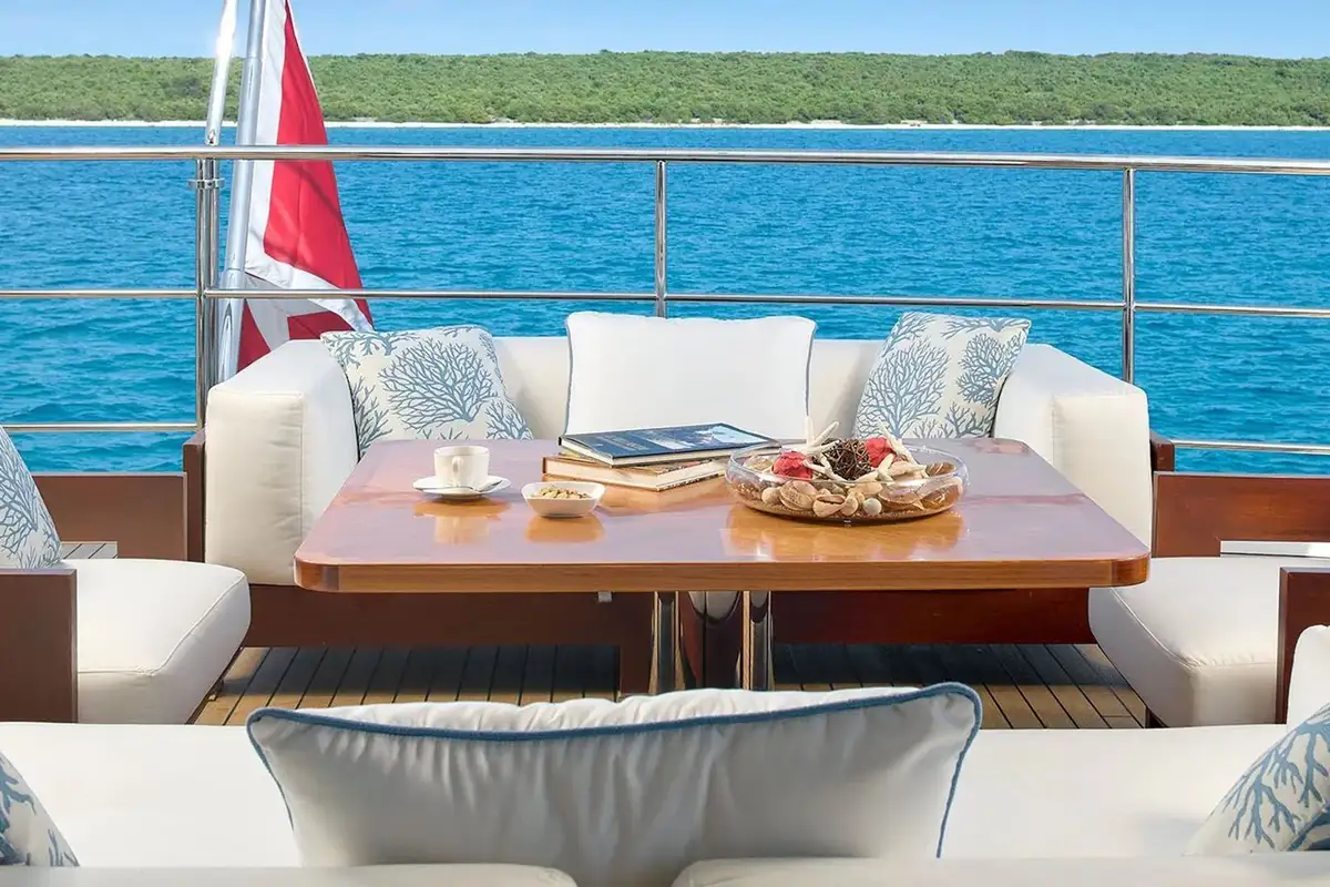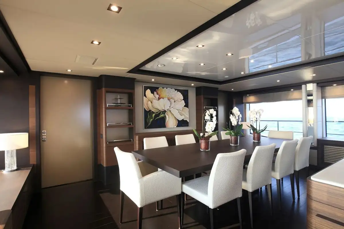 She has huge floor-to-ceiling plate glass windows in her topsides, with panels that slide open and cutaway bulwarks designed to give unobstructed views from her main saloon and skylounge, while letting in a lot more natural light. Combined with welcoming, soothing interior design by the esteemed Zuretti studio, the result is an immensely bright and vibrant living space on both levels that feels like an extension of the seascape outside while also being a relaxing, secluded haven for your private enjoyment.