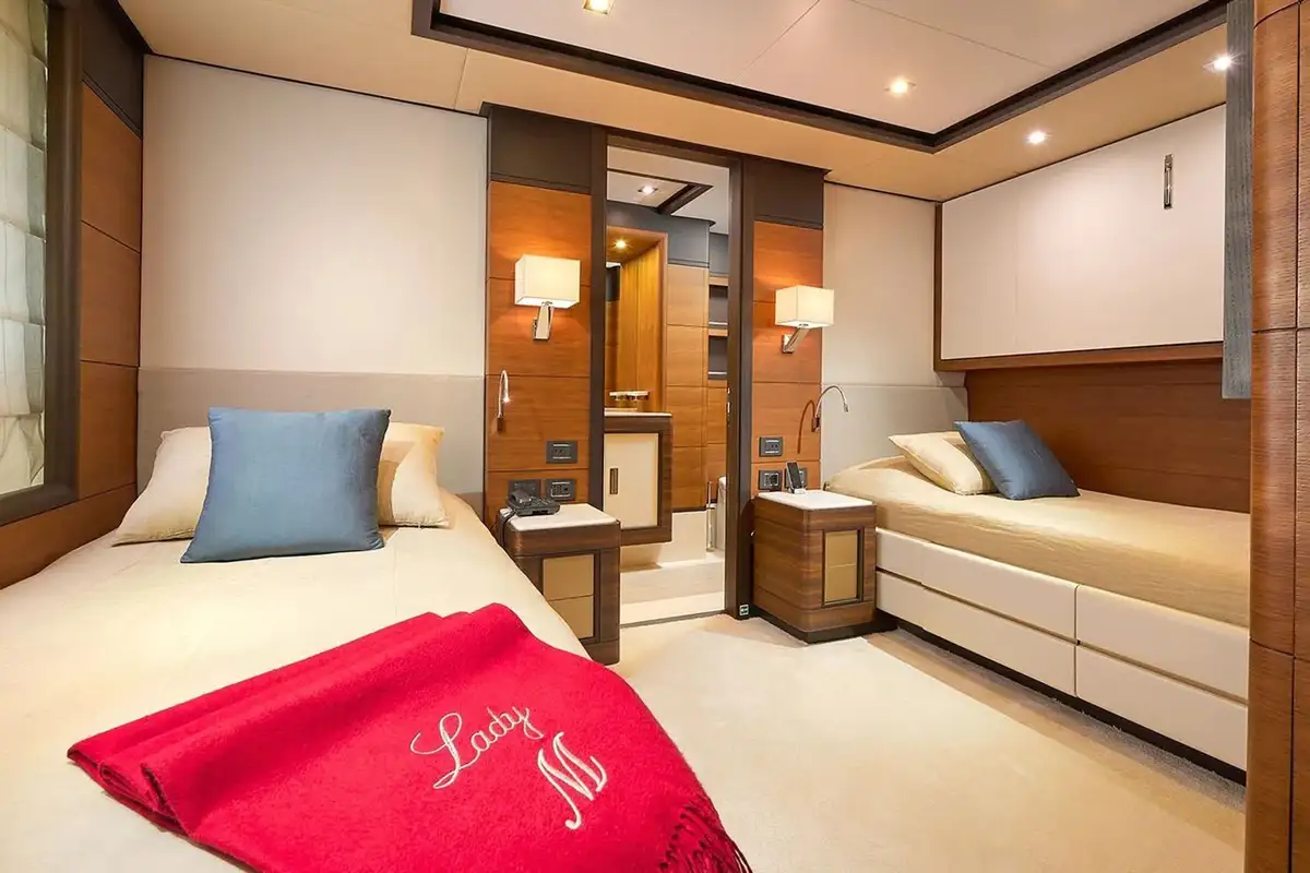 Benetti yachts are renowned for having more than the average amount of living space for their size. Designed for up to 12 guests in five cabins – with two luxurious VIP doubles as well as the full-beam master suite and two twin cabins with Pullman bunks – the 42-metre (138ft) tri-deck yacht LADY M certainly lives up to that reputation and she really delivers the wow factor that will add an extra dimension of enjoyment to your charter holiday.