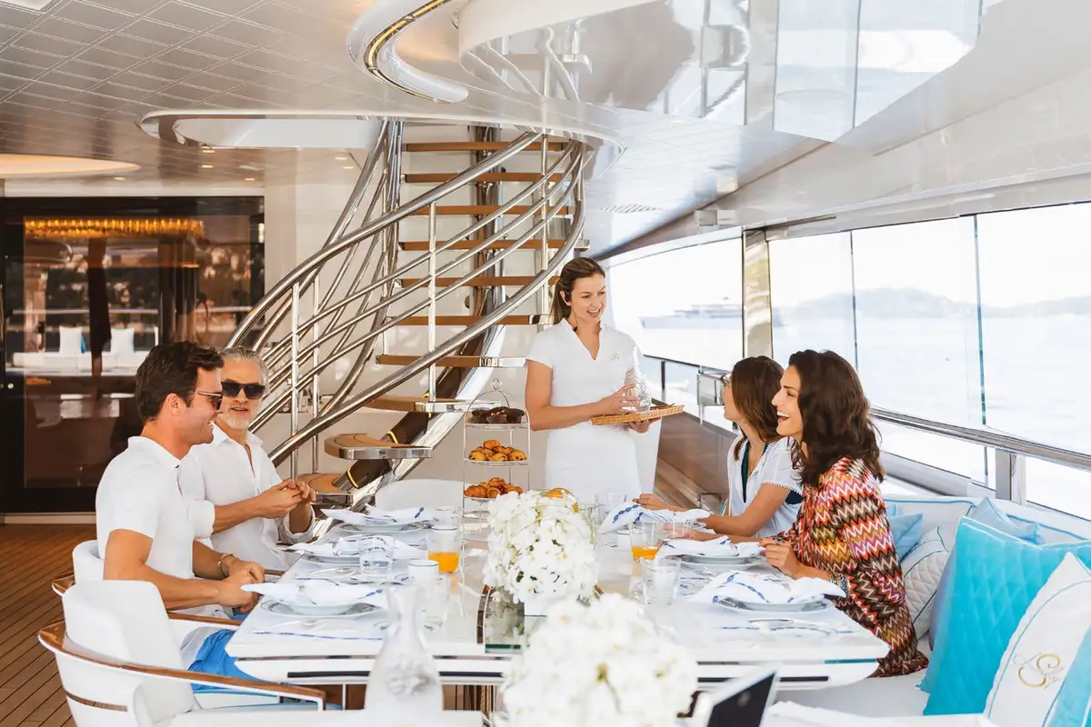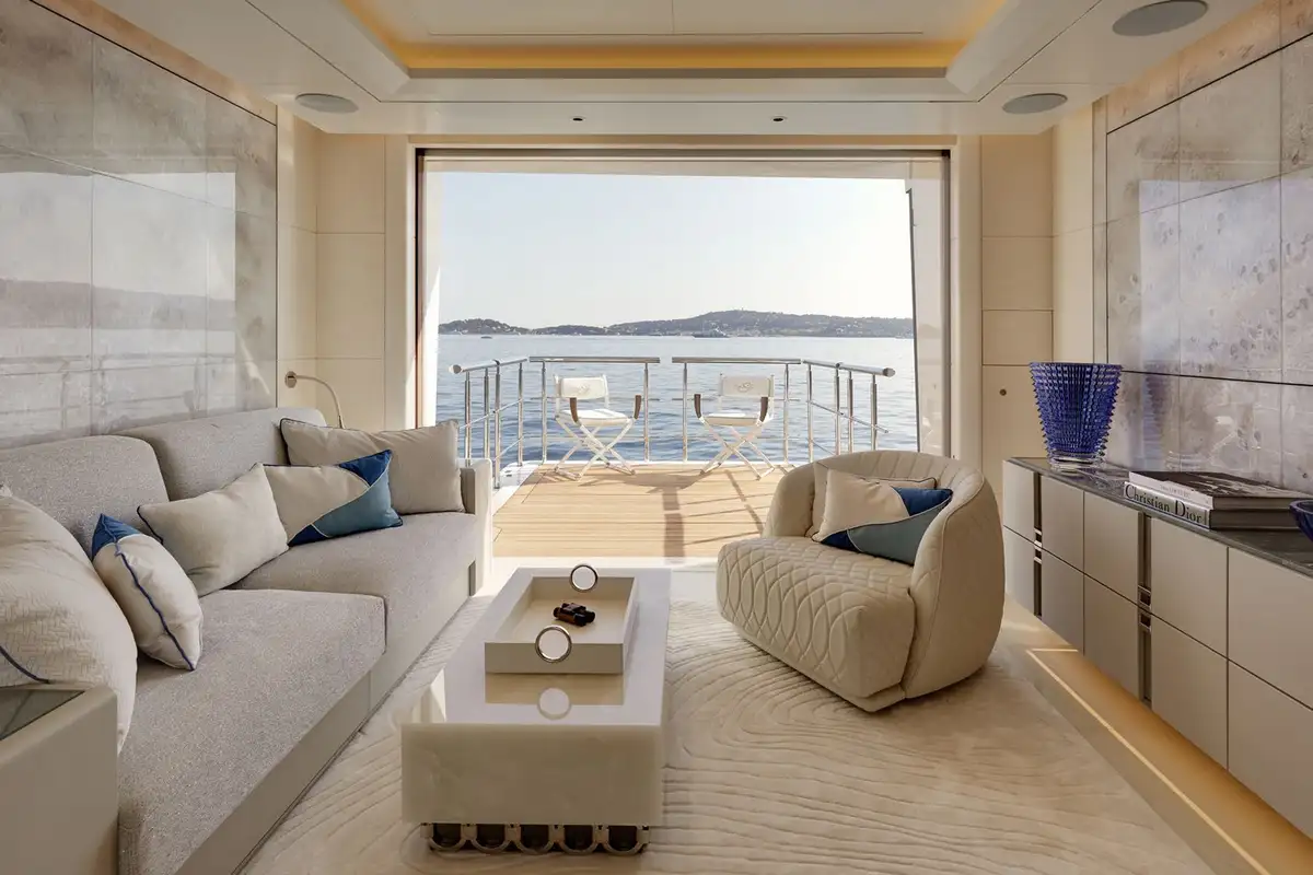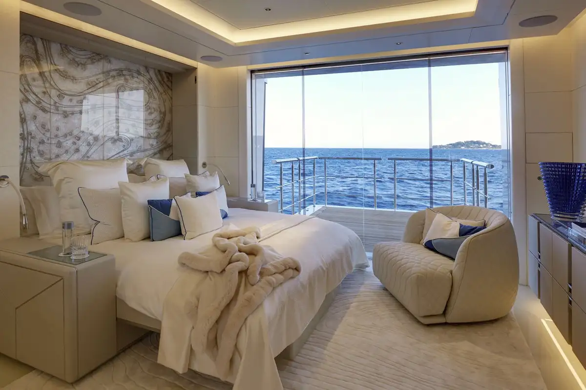 Accommodation for 12 guests across seven cabins includes master suite, two VIP cabins, two doubles and two twin cabins. All guests can enjoy fantastic views through large windows and relax on private fold-out balconies.