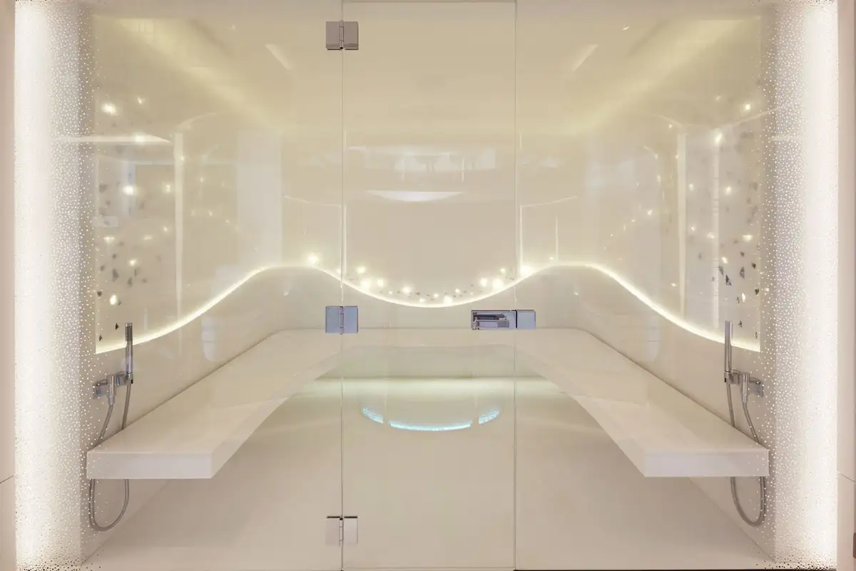 - Spa facilities: massage room, sauna, hammam, ice plunge pool, beauty room