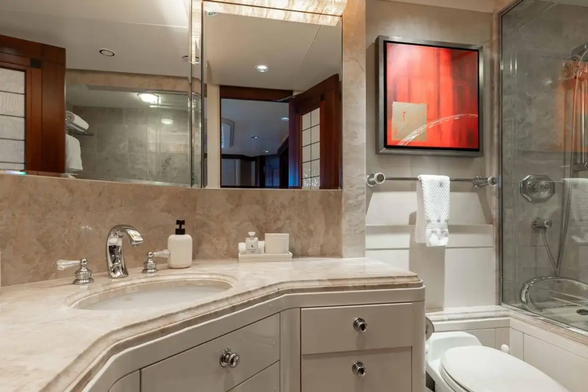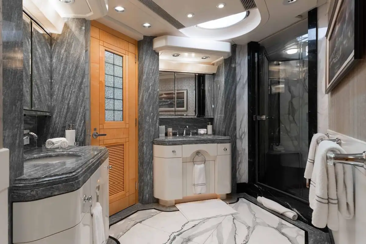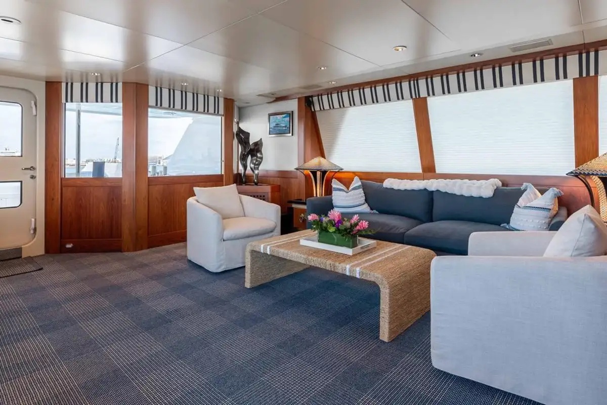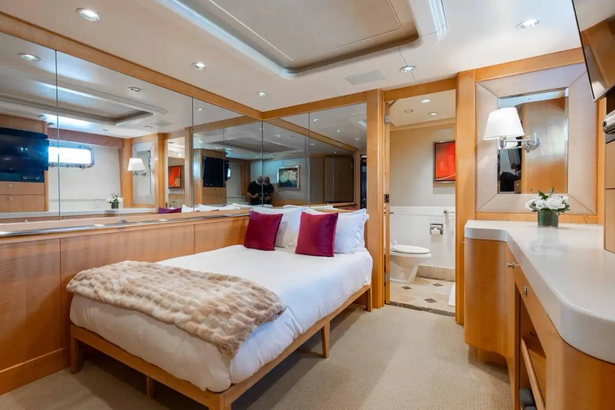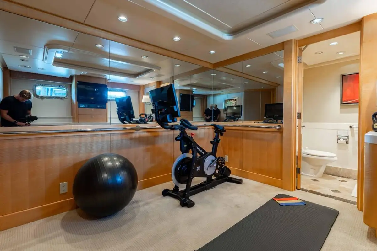 Accommodating up to eight guests, LANIDA features four beautifully appointed cabins and a versatile bonus room. The full-beam master suite on the main deck offers a king-size bed and en suite bathroom, while the lower deck hosts two doubles, a twin, and a convertible space that functions either as a guest cabin or a private gym, depending on your needs.