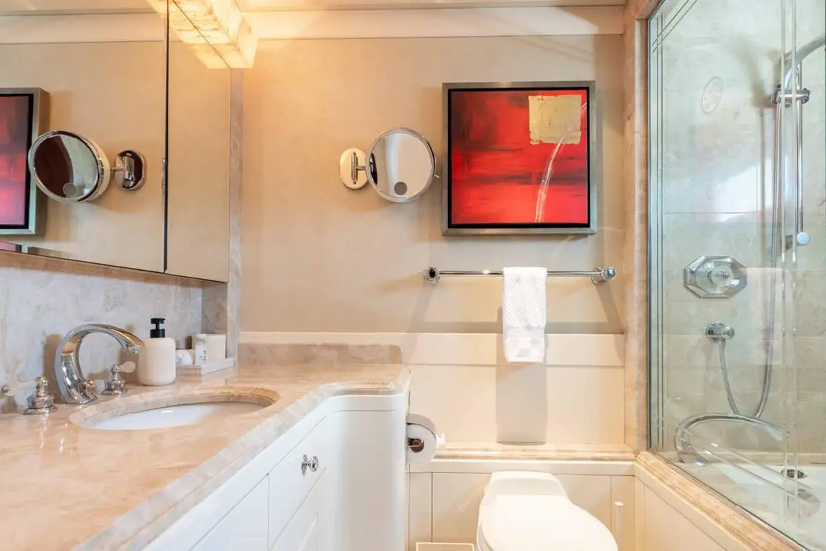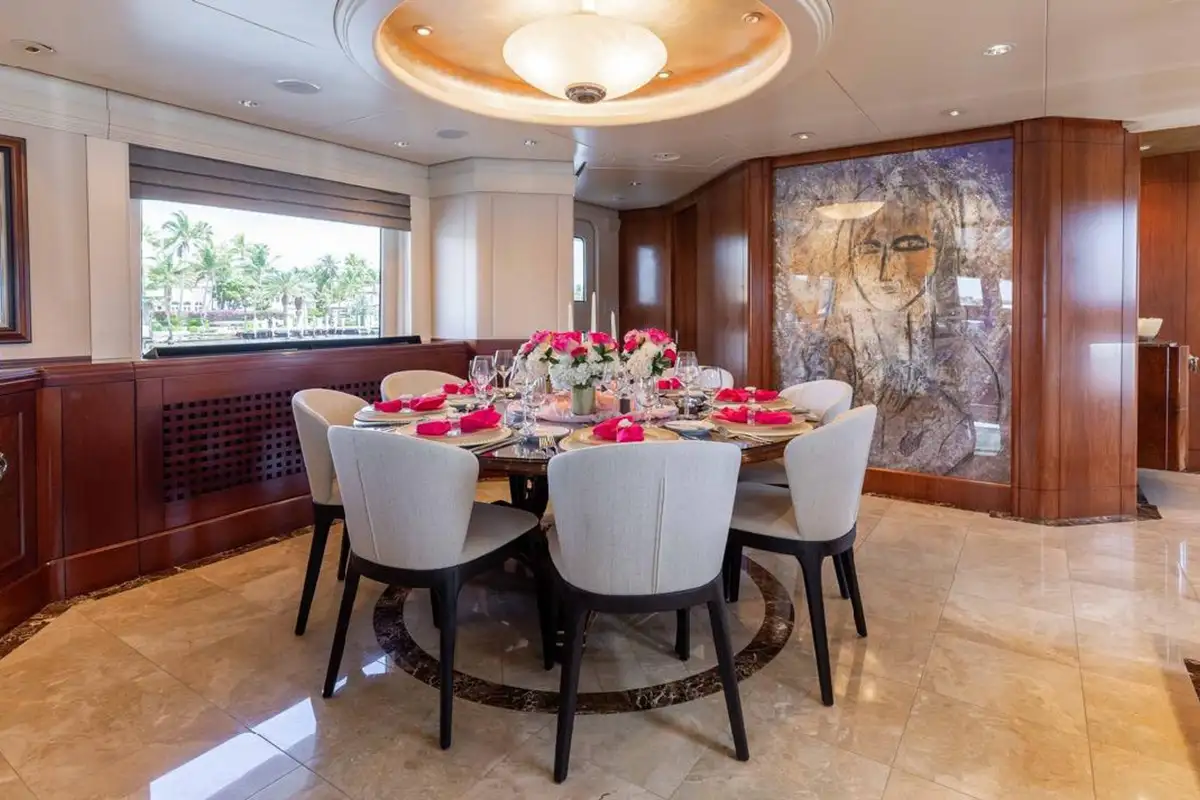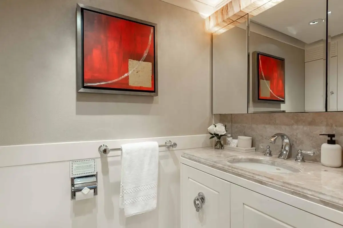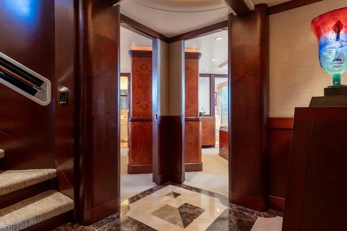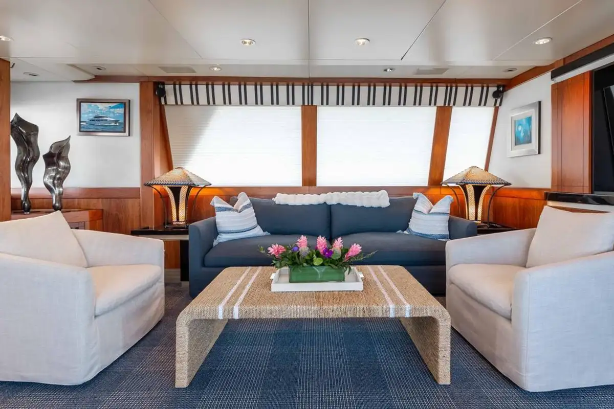 Accommodating up to eight guests, LANIDA features four beautifully appointed cabins and a versatile bonus room. The full-beam master suite on the main deck offers a king-size bed and en suite bathroom, while the lower deck hosts two doubles, a twin, and a convertible space that functions either as a guest cabin or a private gym, depending on your needs.