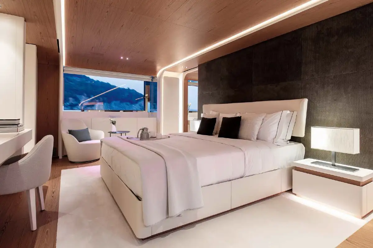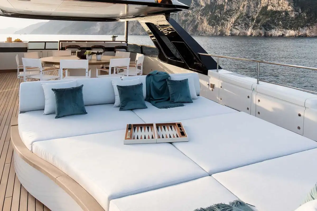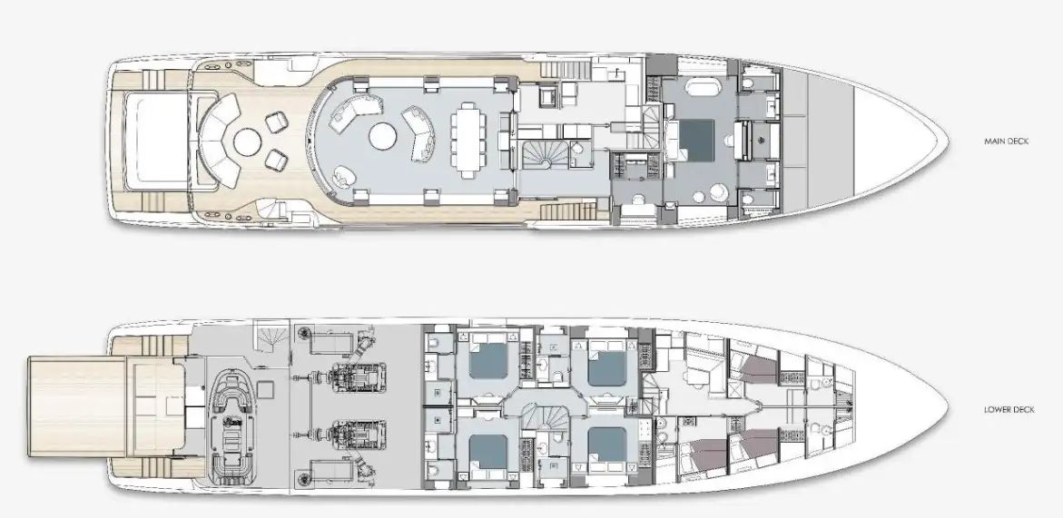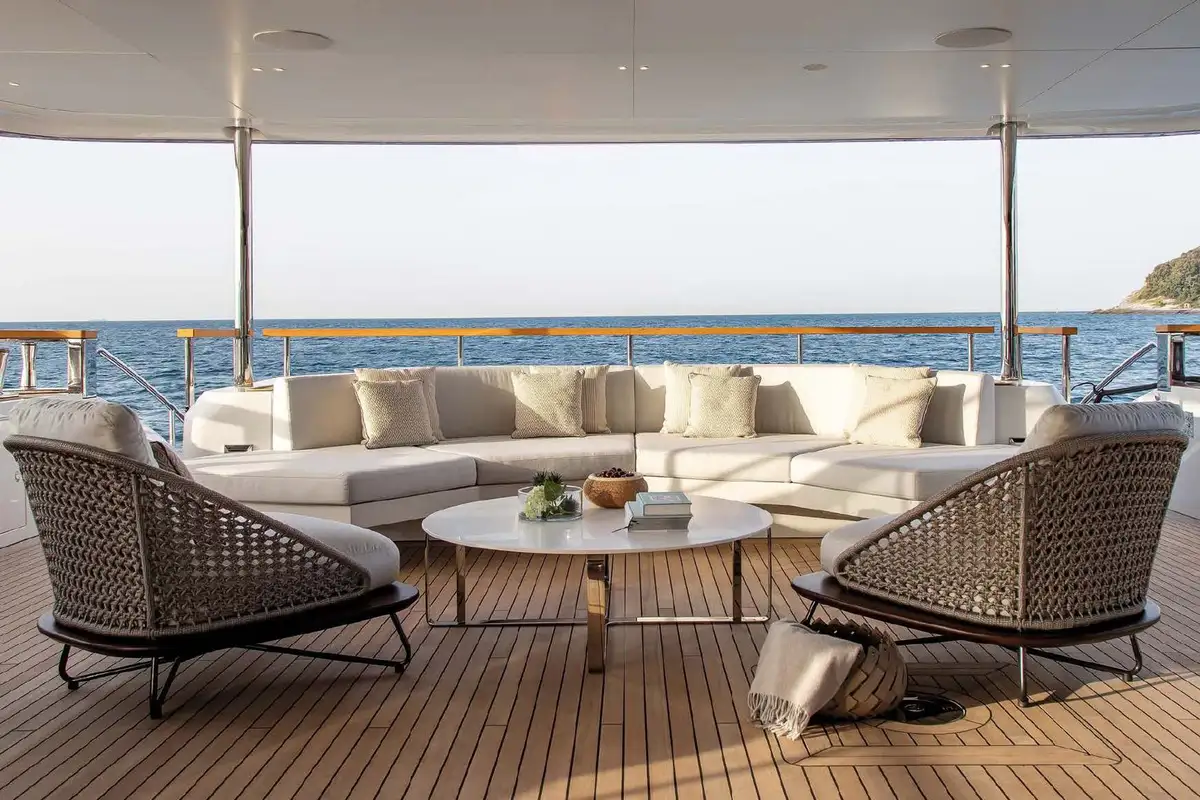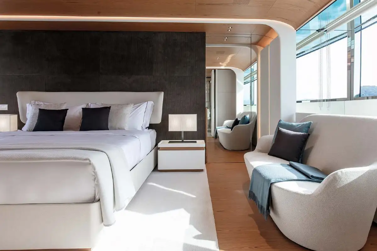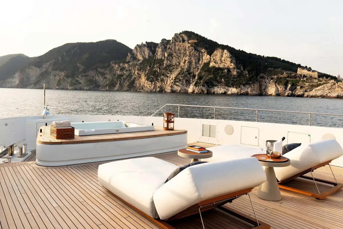 The yacht features 5 lavish cabins, accommodating up to 10 guests in unparalleled comfort. Each cabin is beautifully designed and equipped with modern amenities to provide the perfect retreat after a day of exploration on the water. Indulge in the ultimate outdoor experience aboard the Benetti 121-LEGEND. Whether you're soaking up the sun on the spacious sun deck, enjoying a refreshing dip in the jacuzzi, or dining alfresco under the stars, the yacht offers endless opportunities for relaxation and entertainment.