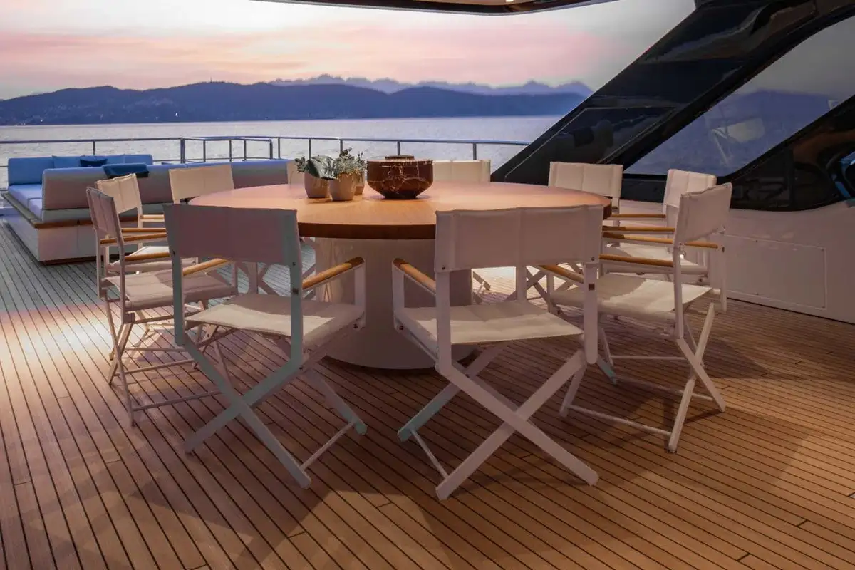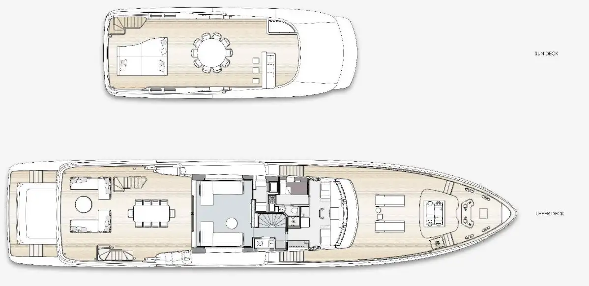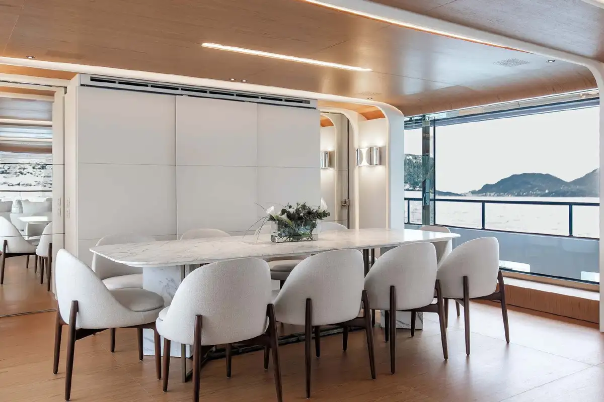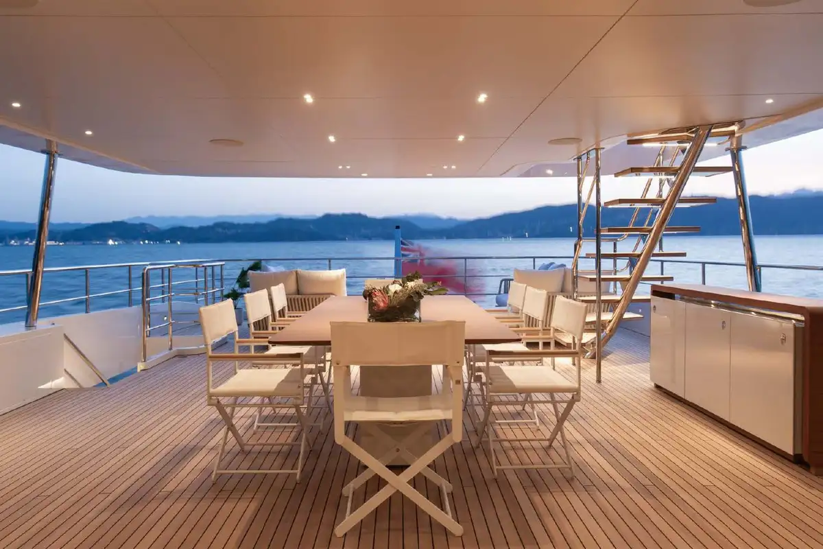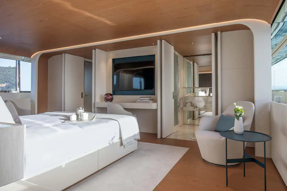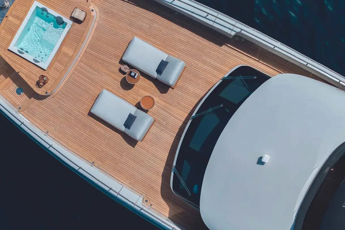 The yacht features 5 lavish cabins, accommodating up to 10 guests in unparalleled comfort. Each cabin is beautifully designed and equipped with modern amenities to provide the perfect retreat after a day of exploration on the water. Indulge in the ultimate outdoor experience aboard the Benetti 121-LEGEND. Whether you're soaking up the sun on the spacious sun deck, enjoying a refreshing dip in the jacuzzi, or dining alfresco under the stars, the yacht offers endless opportunities for relaxation and entertainment.