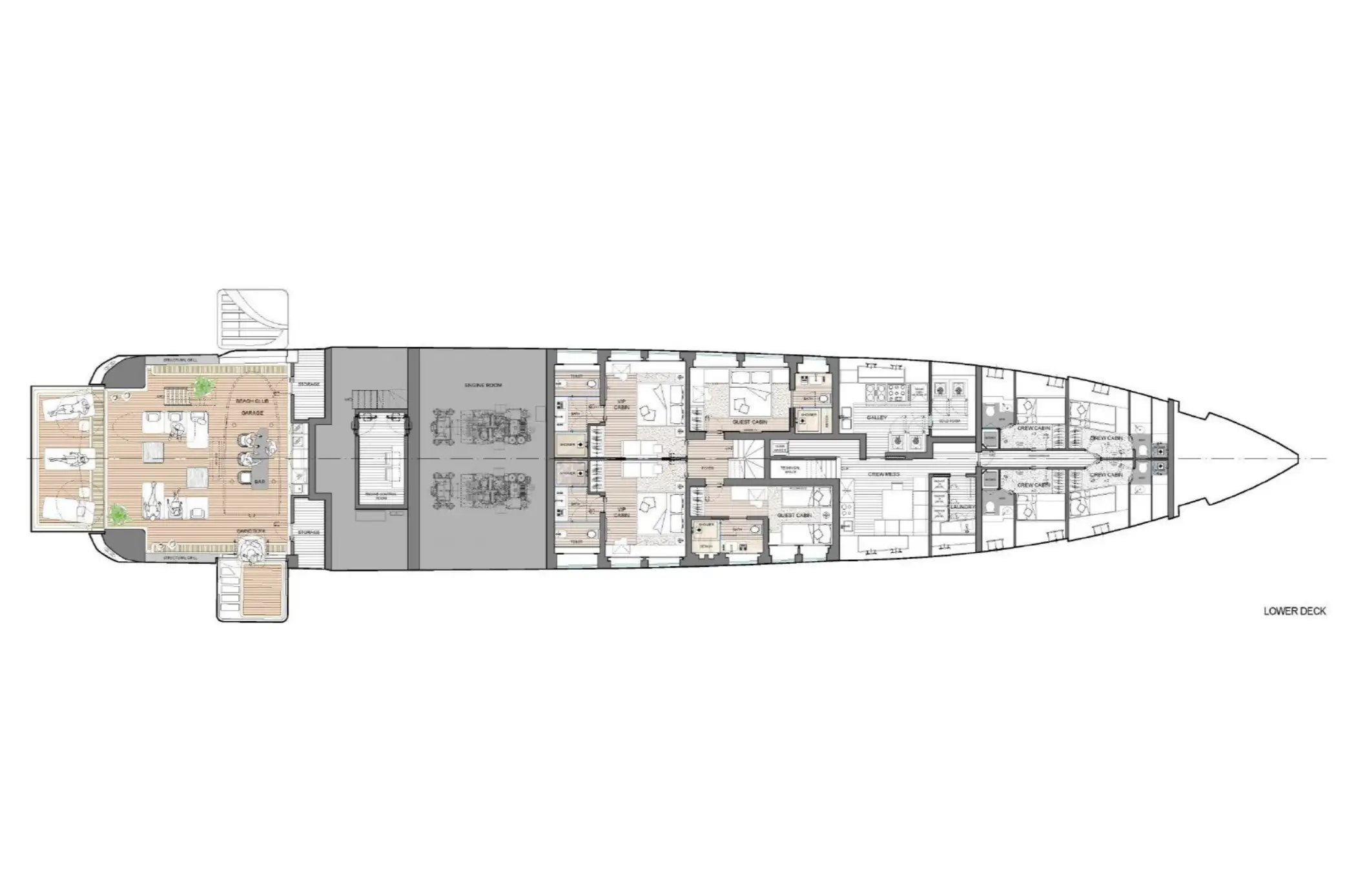 LEL and her ever-professional crew will ensure you and your guests enjoy six luxurious suites on board. The master suite is a fabulous space, made even better by the private balcony that can be enlarged with the fold-down section. This magnificent suite benefits from a spacious marble-lined en suite bathroom with a freestanding bath. The guest suites are on the lower deck and consist of two luxurious half-beam double VIP suites, a double cabin and a twin-berth cabin.