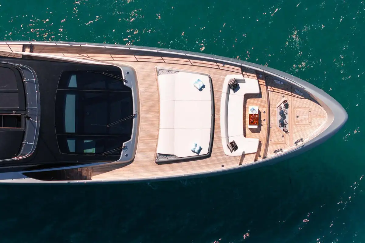 There is plenty of space to relax together, too. The foredeck has a huge sun pad and forward-facing sofa seating. This is where you’ll get your tan, stretch out in the sun, and feel the wind in your hair as the yacht speeds you to your next exciting anchorage.