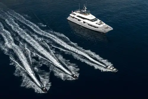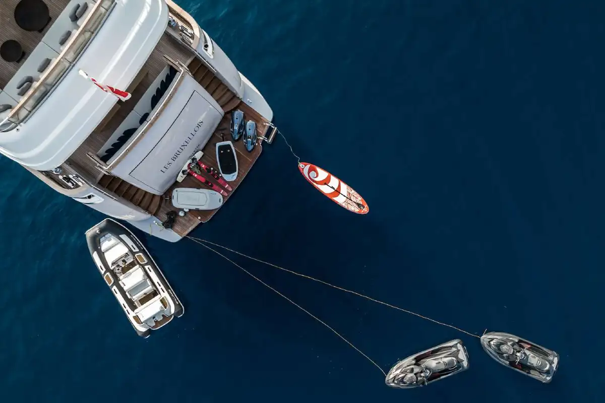 She carries a great selection of the latest watersports equipment. It’s always more fun to play doubles, so she has two high-spec jet skis, two SeaBobs and two Lift e-Foil boards, plus a jet-propelled RIB and a wide range of other toys.