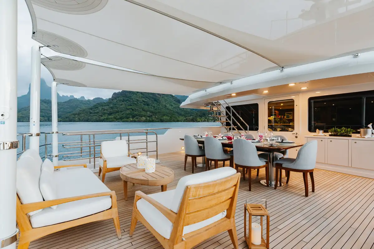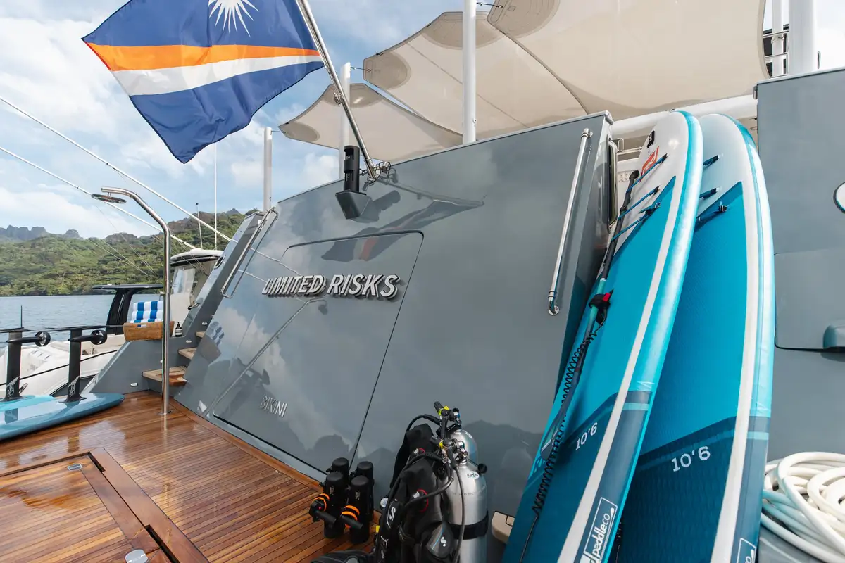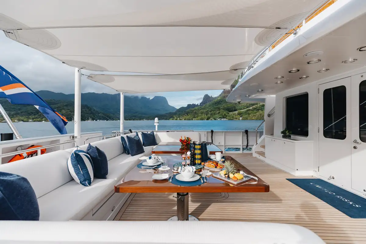 Newly refitted for 2025 and fresh back on the charter market, LIMITED RISKS is ready for her next adventure in French Polynesia. Built for discovery, she was awarded the Voyager’s Award at the World Superyacht Awards in 2020, proof of her ability to take guests to the most remote corners of the globe in complete comfort and style.