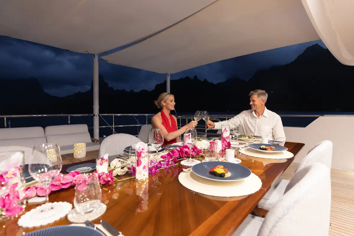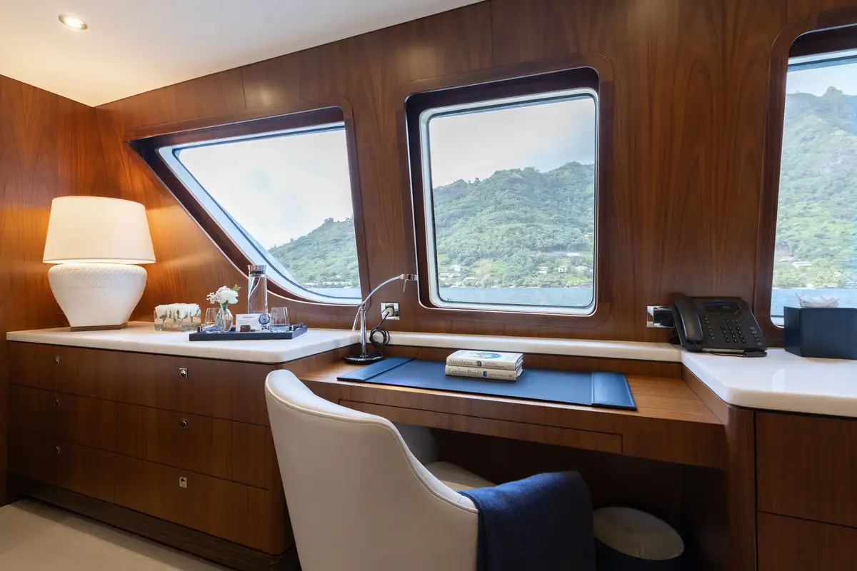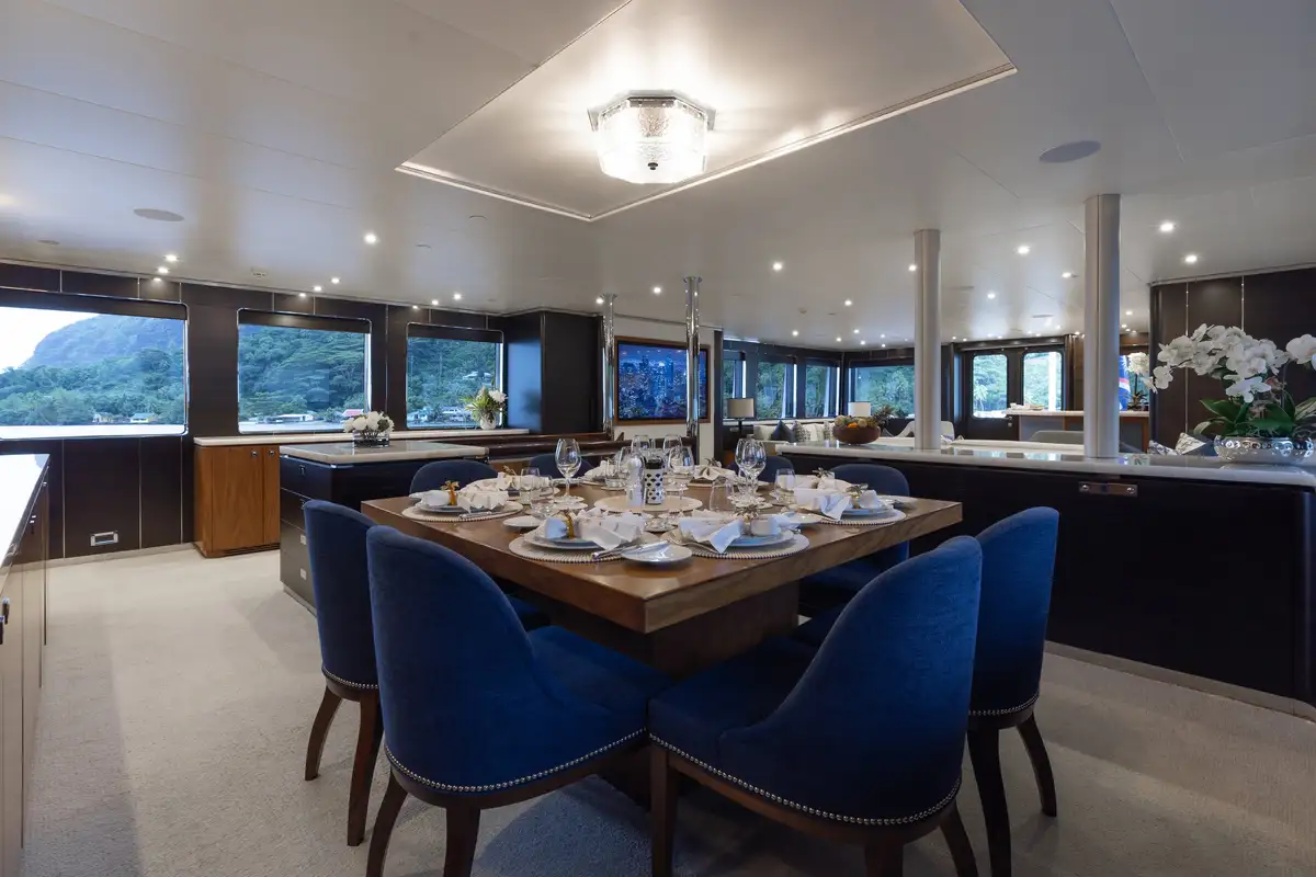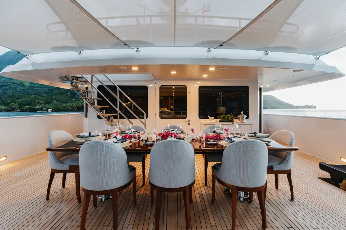Newly refitted for 2025 and fresh back on the charter market, LIMITED RISKS is ready for her next adventure in French Polynesia. Built for discovery, she was awarded the Voyager’s Award at the World Superyacht Awards in 2020, proof of her ability to take guests to the most remote corners of the globe in complete comfort and style.