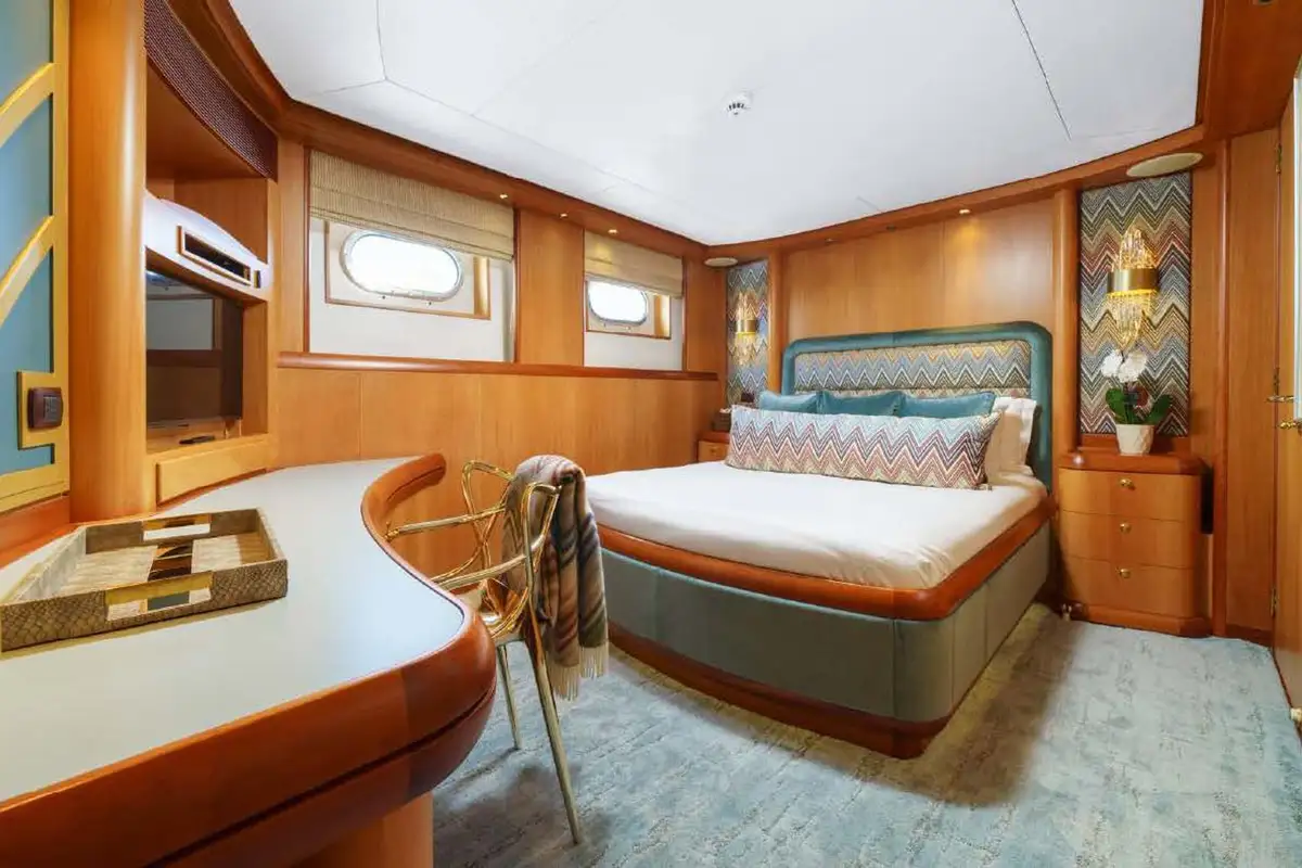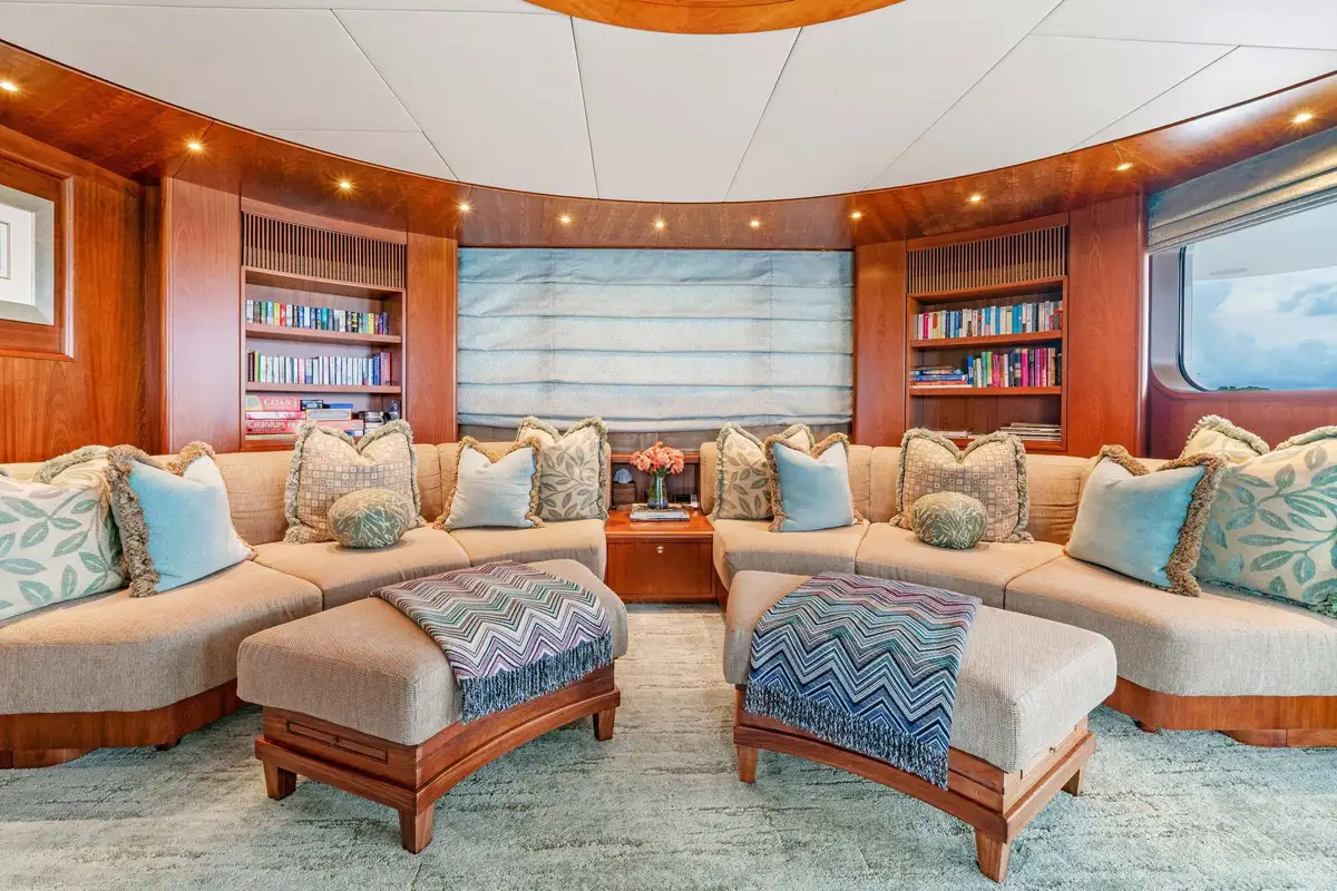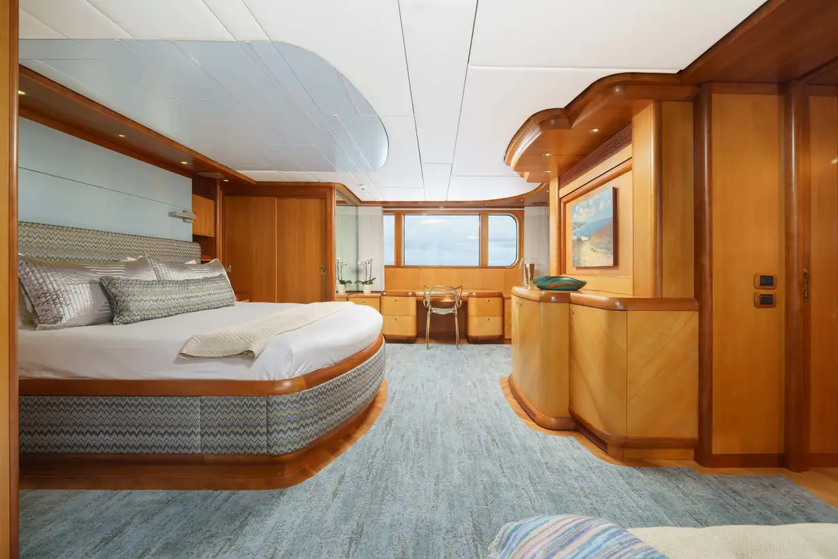 The interior of LOHANKA is quietly refined. With four beautifully appointed cabins, she can accommodate up to 8 guests. The main deck master suite offers seascape views and a serene retreat. Additional guest accommodations include two queen cabins and a twin cabin, all with en suite facilities, ensuring total comfort for everyone on board. The bridge deck also boasts a private study to stay in-touch with work as needed.