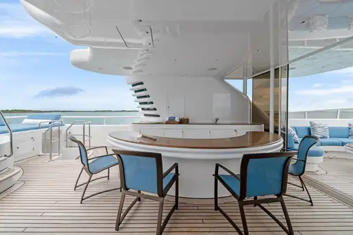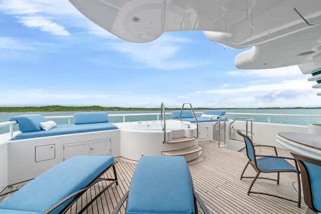 LOHANKA is designed with a flexible layout to maximise both relaxation and convenience. She has walk-around decks, which are perfect for a stroll and dolphin spotting, giving guests the sense of space. The sun deck, equipped with a jacuzzi, is the go-to spot for relaxing in the sun while enjoying elevated views. In the evenings, the sit-up bar becomes a place to gather.