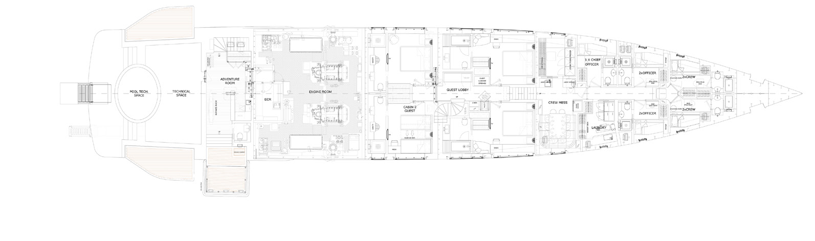 An abundance of natural light floods every deck, enhanced by panoramic windows and an open-plan layout that erases the boundaries between inside and out. LUMIERE accommodates up to 12 guests in six cabins, including a full-beam master cabin on the main deck with its own private balcony, as well as a sixth cabin that is located on the upper deck. The lower deck hosts three spacious doubles and one convertible cabin so guests can have the choice of a flexible cabin arrangement.
