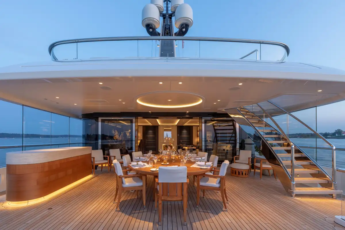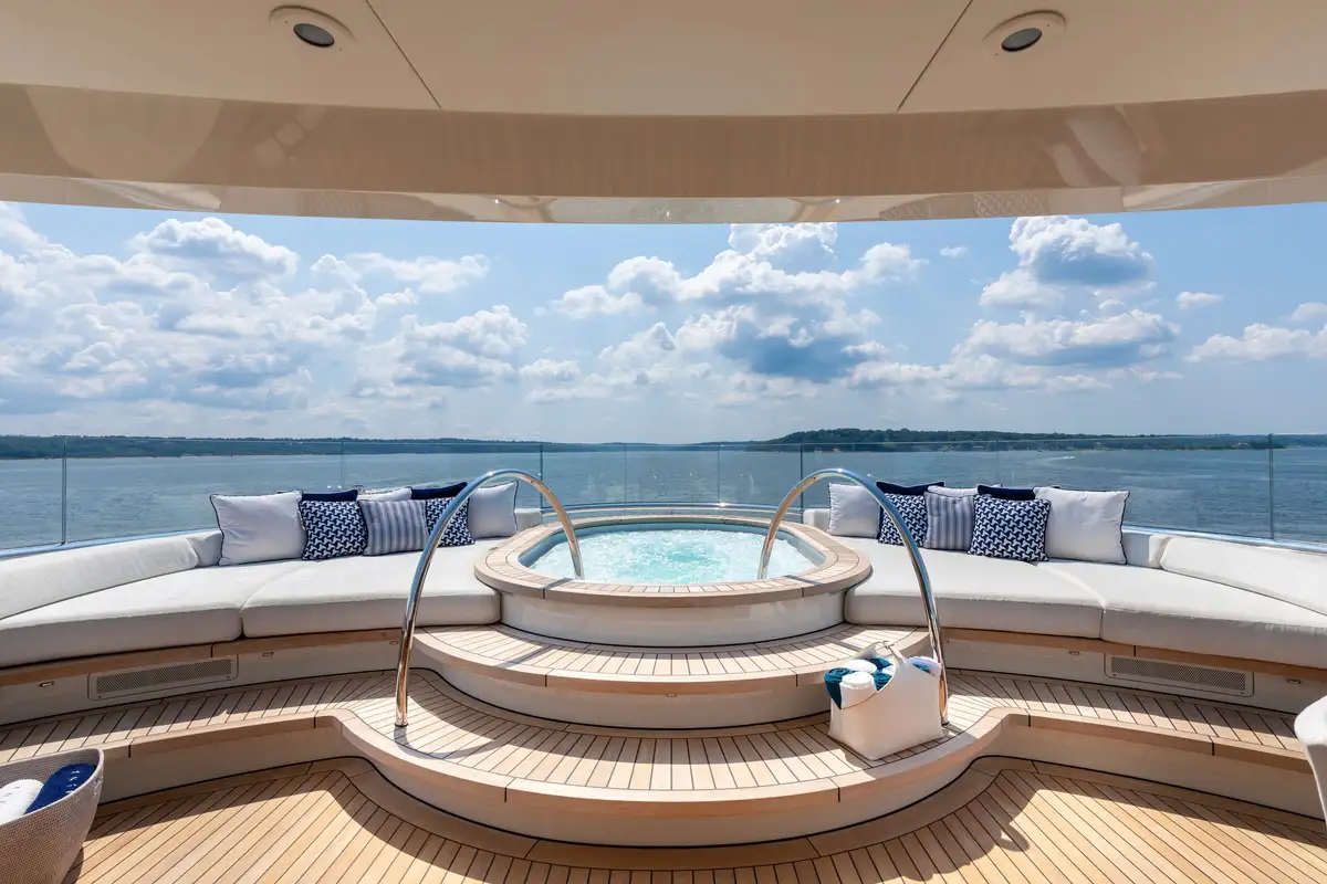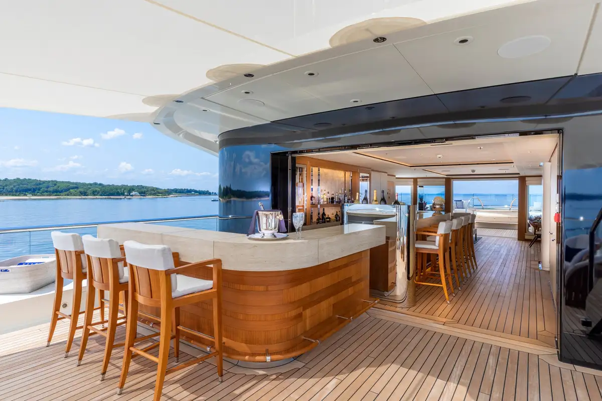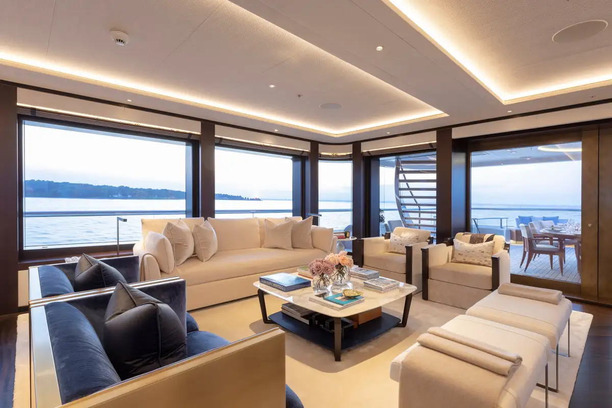 At 73m (239.5ft) with a beam of 11.9m (39ft), she has huge amounts of inside and outside space across her five decks. The interior showcases a bright and luxurious beach chic design reminiscent of Riviera lifestyle. Outside, a fold down TV on the main deck aft makes this area a family focus and with a BBQ on the bridge deck and a Teppanyaki grill on the sun deck, al fresco dining is all part of the picture.