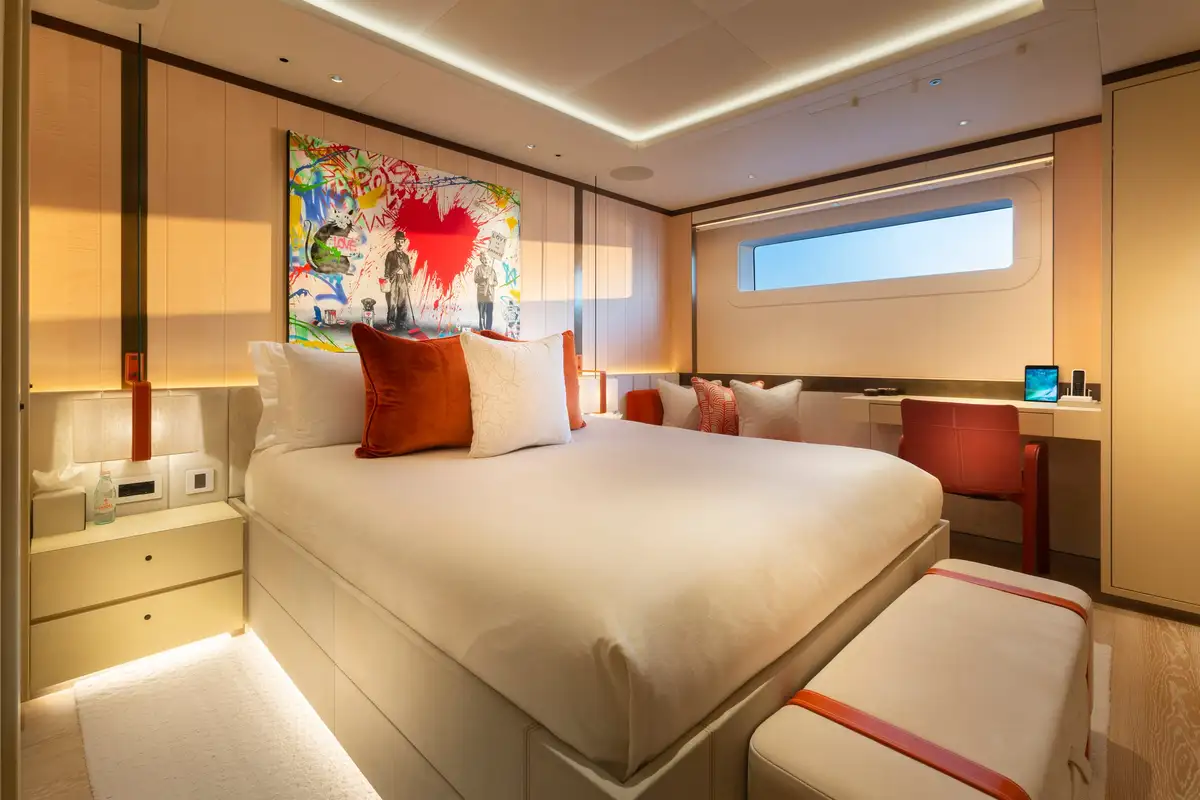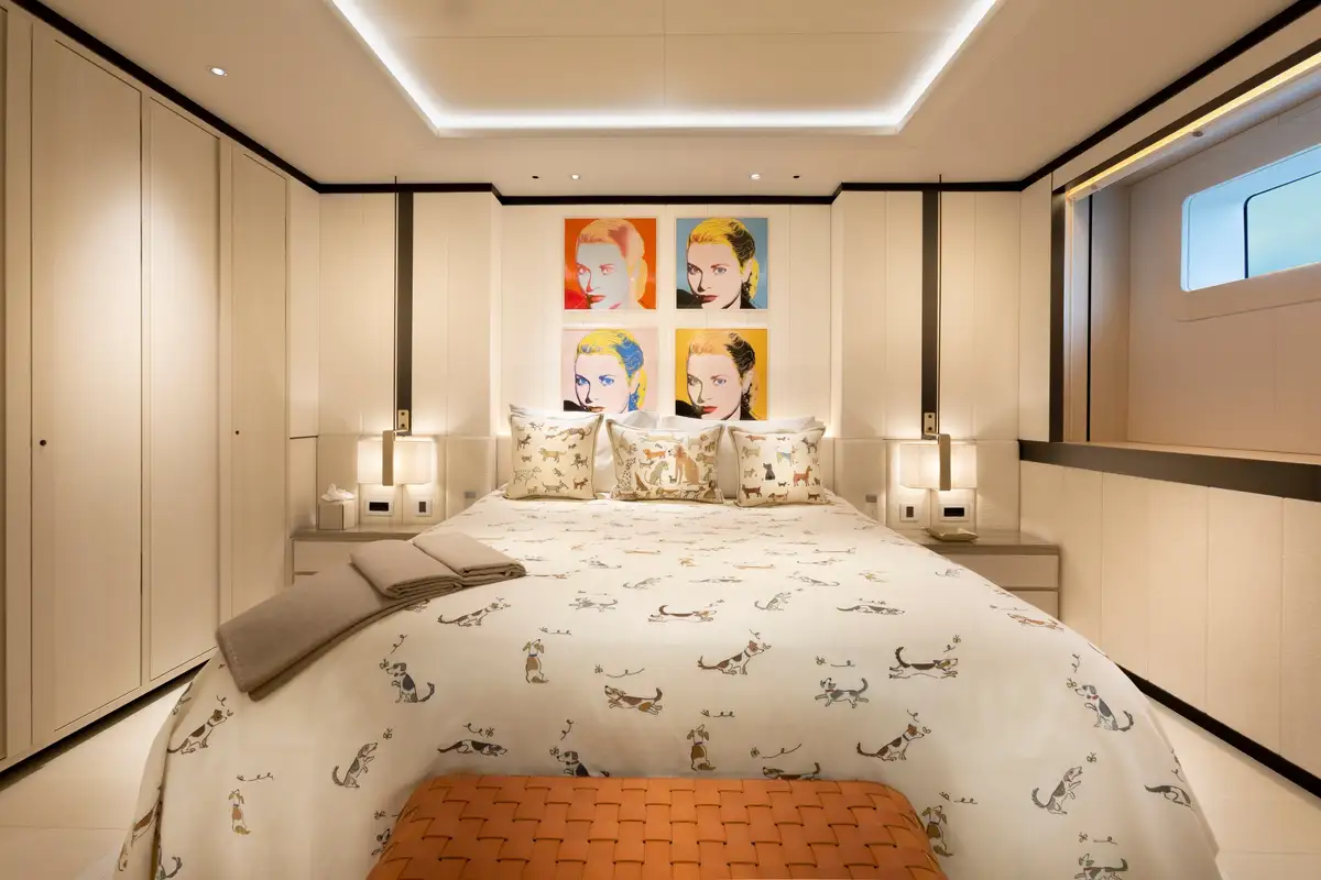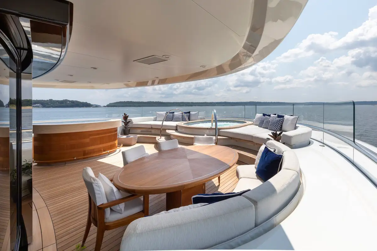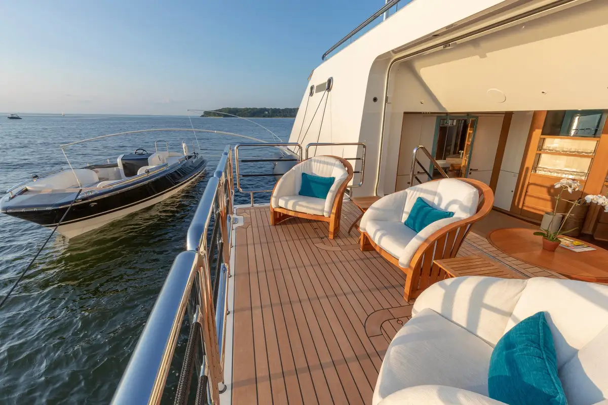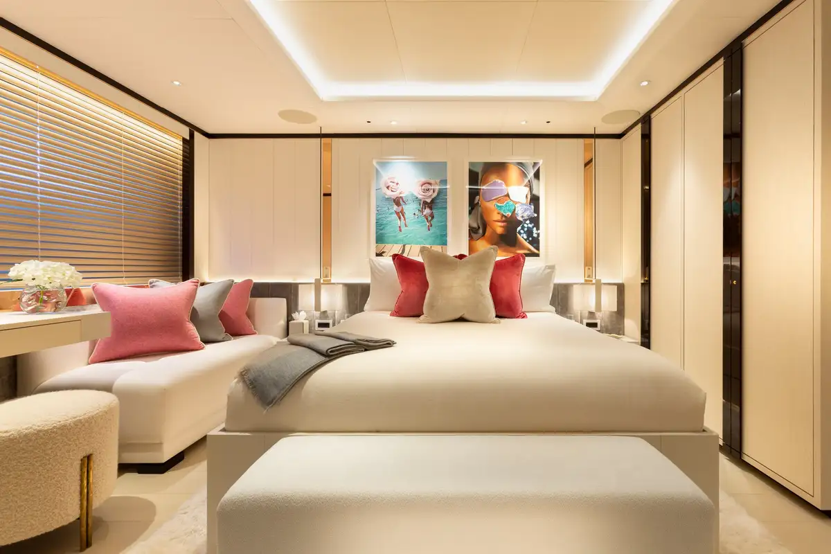 At 73m (239.5ft) with a beam of 11.9m (39ft), she has huge amounts of inside and outside space across her five decks. The interior showcases a bright and luxurious beach chic design reminiscent of Riviera lifestyle. Outside, a fold down TV on the main deck aft makes this area a family focus and with a BBQ on the bridge deck and a Teppanyaki grill on the sun deck, al fresco dining is all part of the picture.