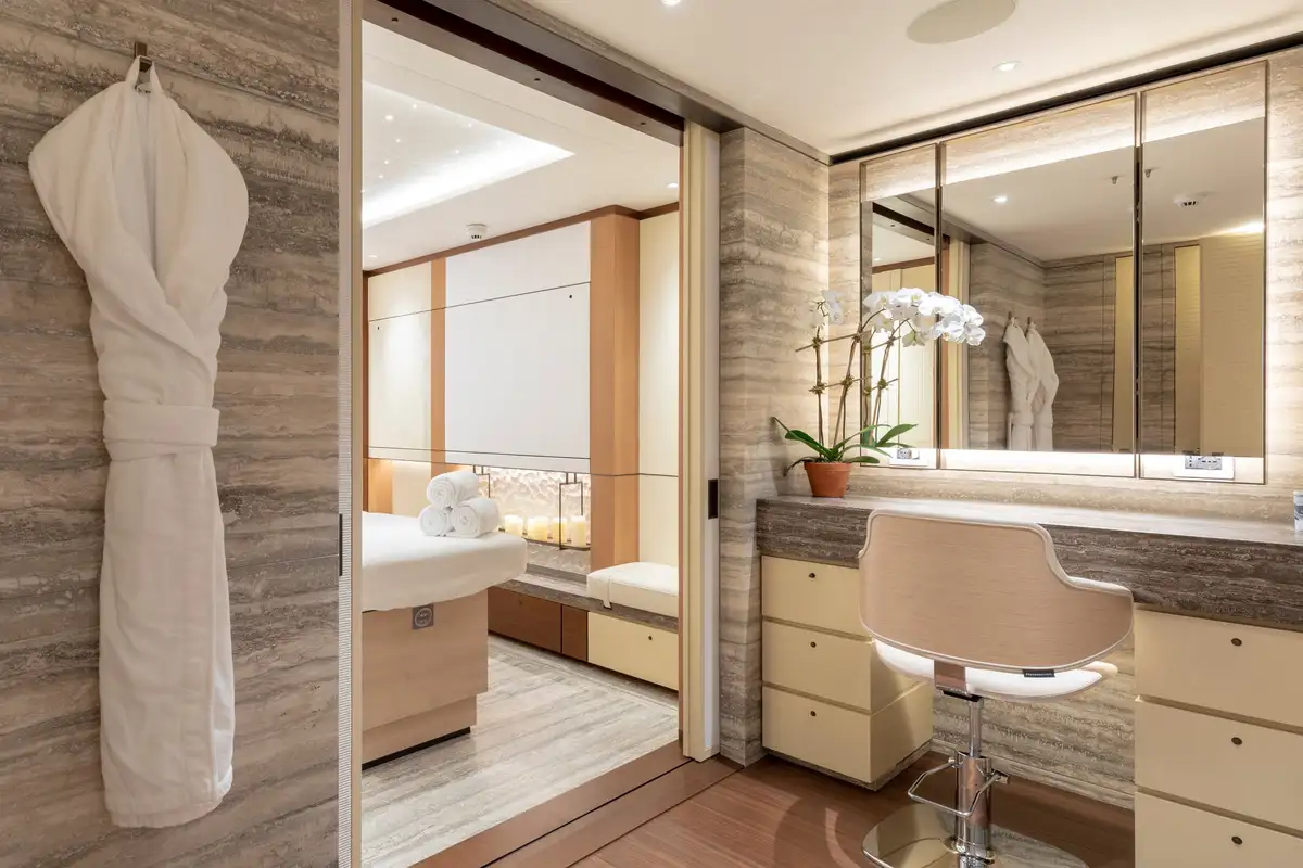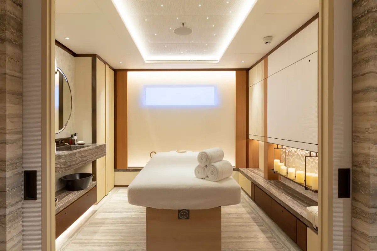 Also on the lower deck is the beautiful wellness spa complete with a massage room, hairdressing salon and shower where guests can unwind and let the cares of the day ease away.