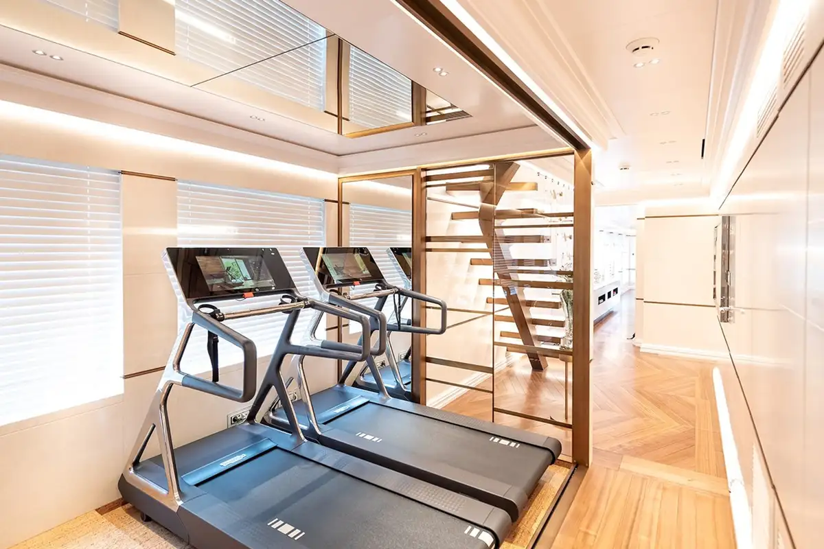 For those seeking active pursuits, M55 is equipped with a well-appointed gym and a range of exercise equipment, allowing guests to maintain their fitness regime while at sea.
