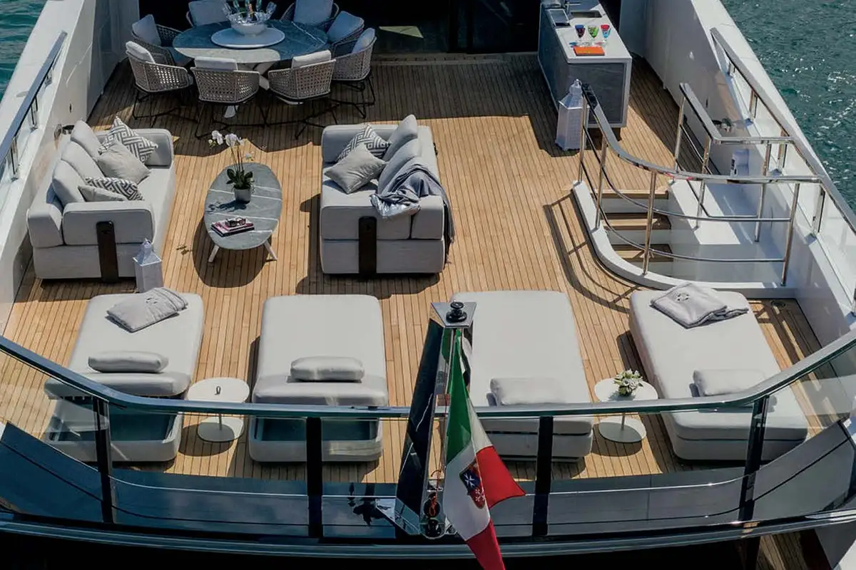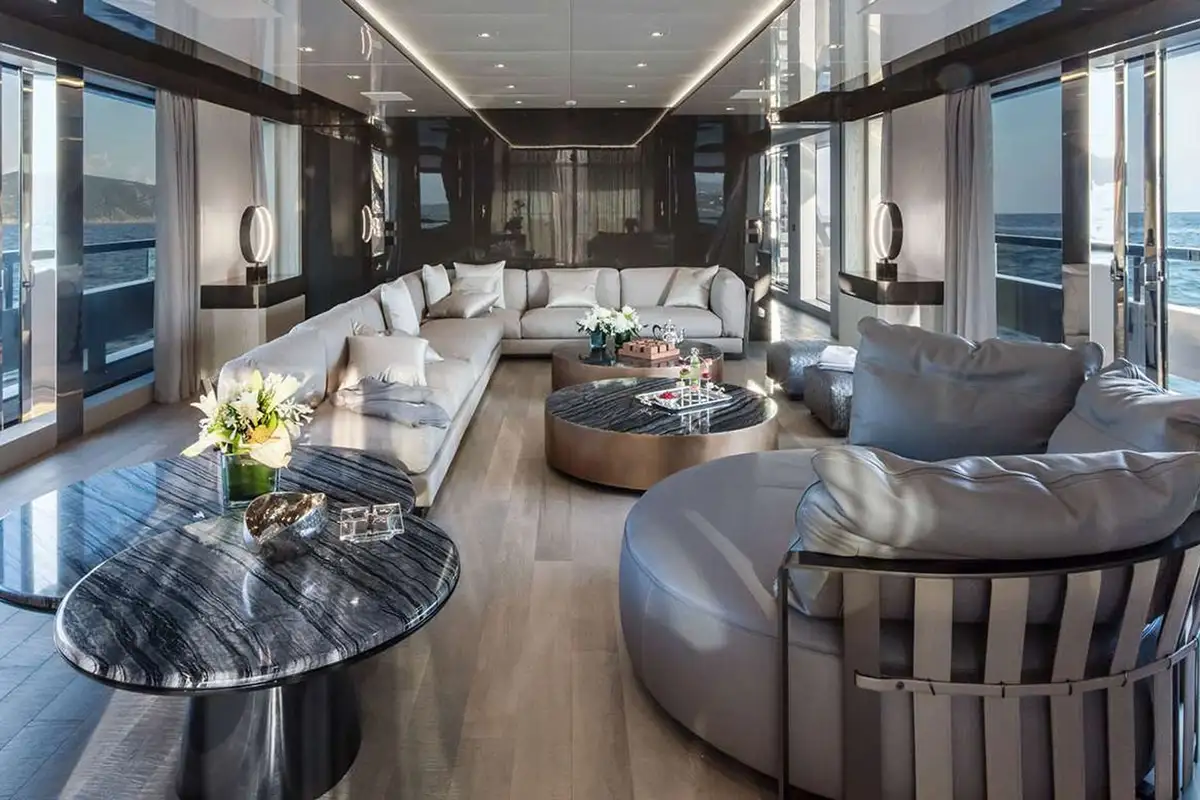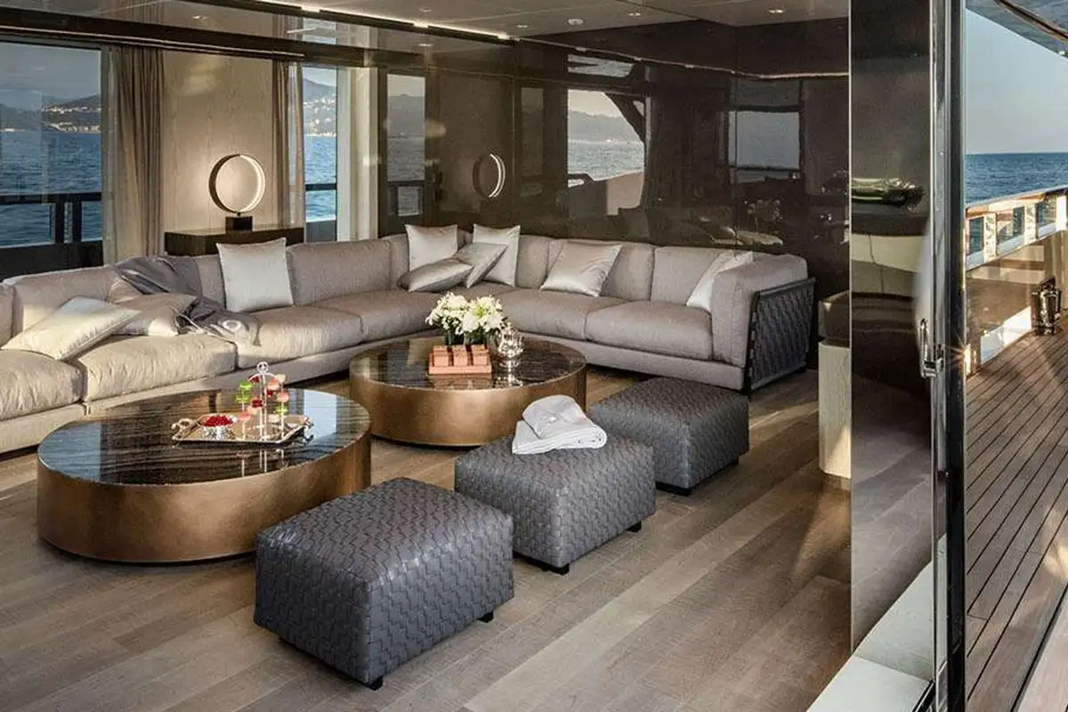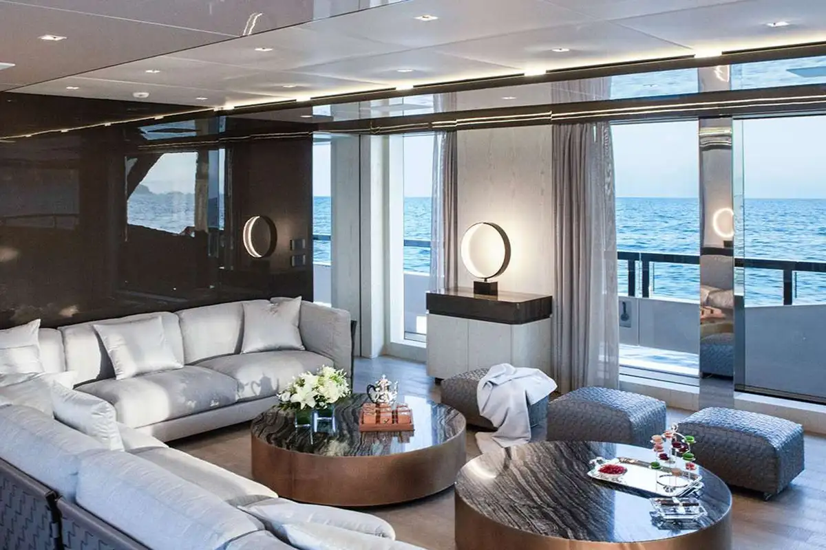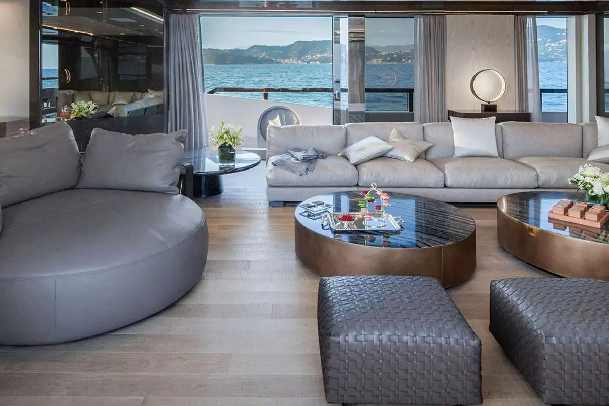 After your cliff-top lunch a taxi brings you to the harbour where the MA tender is waiting to ferry you aboard. The main deck saloon is a cool, luxurious sanctuary from the afternoon heat. Showing off modern Italian design, this room could well be found on the cover of a magazine, with floor-to-ceiling windows that slide back to reveal uninterrupted views on all three sides.