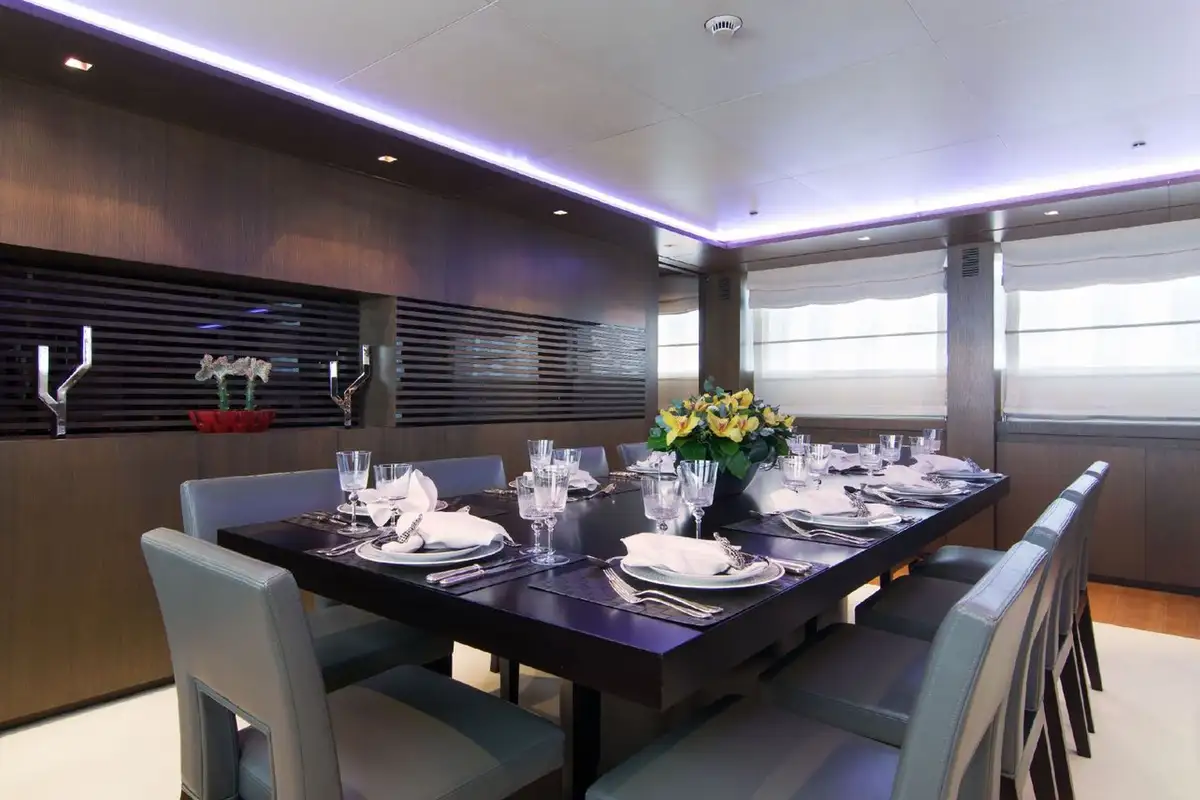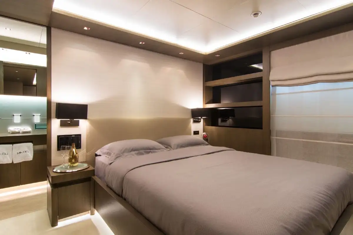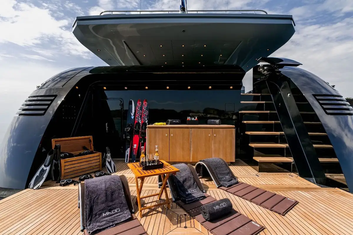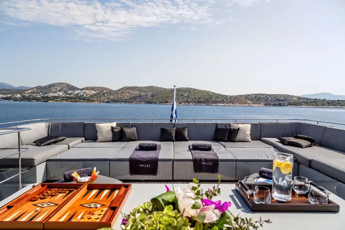 On deck MADO has a large sun deck with a vast social sunpad to the rear and a dining area that can be shaded. Should you wish to relax closer to the water there is a beach club on the fold-down swim platform.