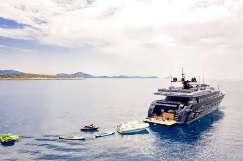Her experienced captain knows the very best locations to take you and your party for secluded beaches, water sports activities, sight-seeing or shopping; whatever you want to do that day. She has a collection of towable toys, a SeaDoo and SUPs as well as two tenders to entertain your party be they a child or a grandparent.