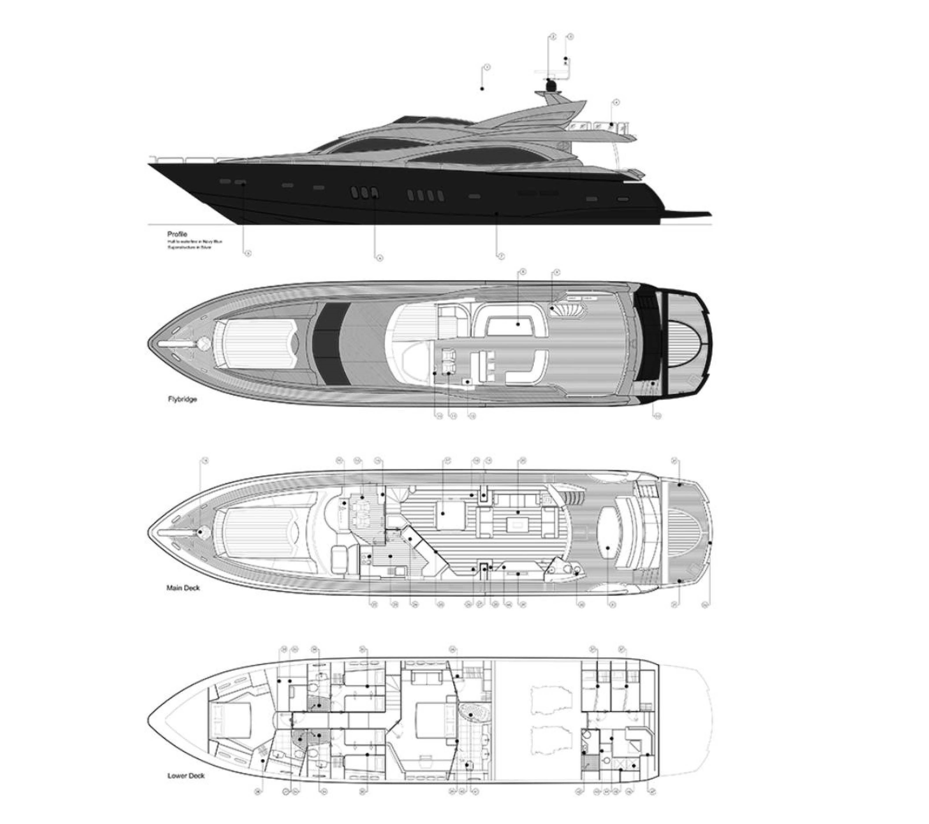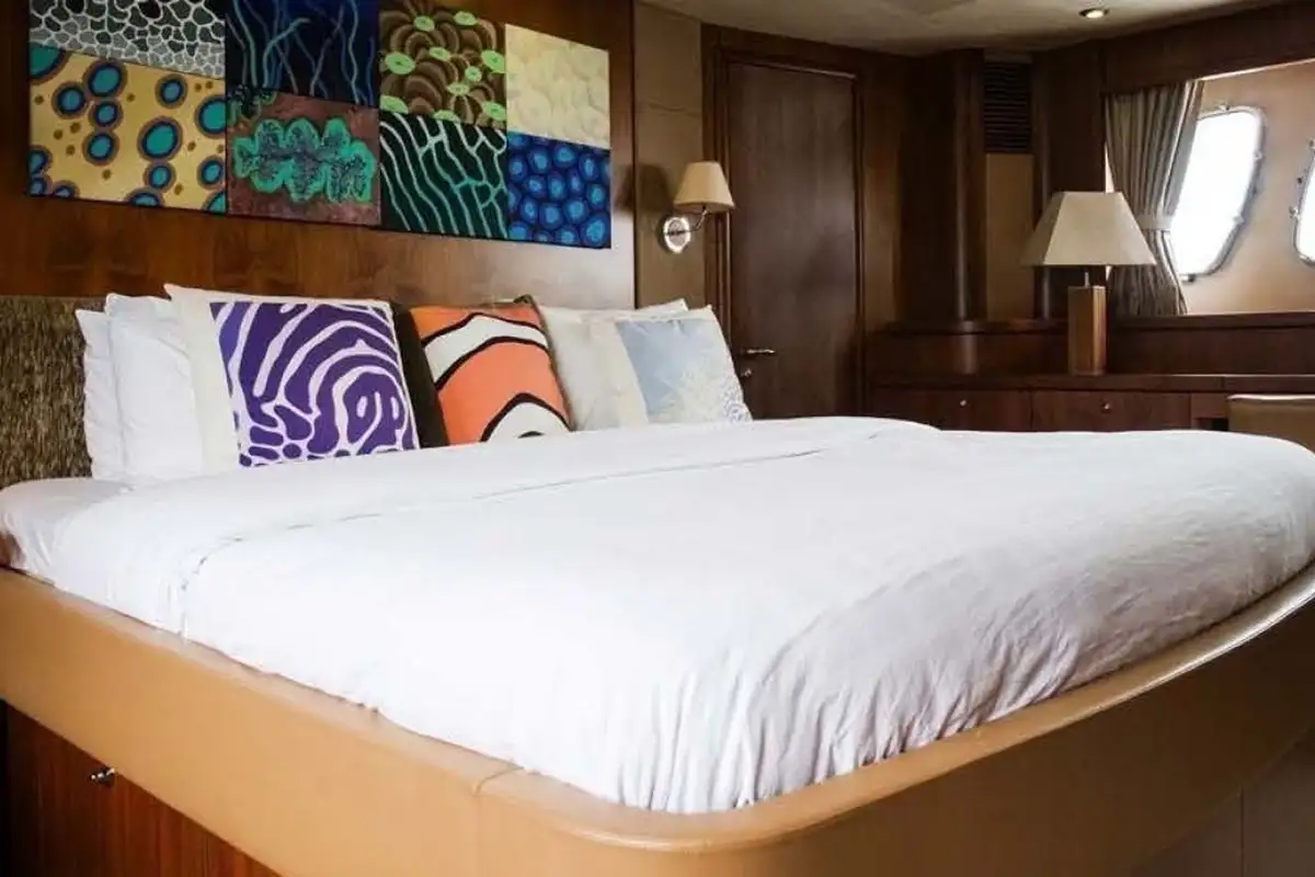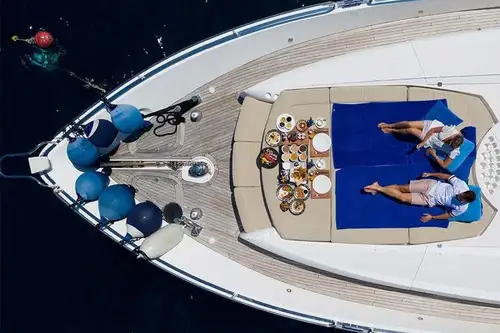 With a top speed of 28knots MAJOR AFFAIR can whisk you away in total comfort and privacy. Spend time in secluded anchorages, relaxing in the sun on her vast forward sunpad or the aft sunpad on the rear of the flybridge. Alternatively, unwind on the shaded flybridge or enjoy drinks from the bar or delicious food from fresh from the BBQ. On the flybridge you can indulge in breakfast, lunch or dinner while enjoying the elevated views of your surroundings.