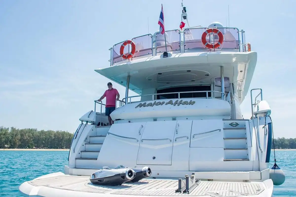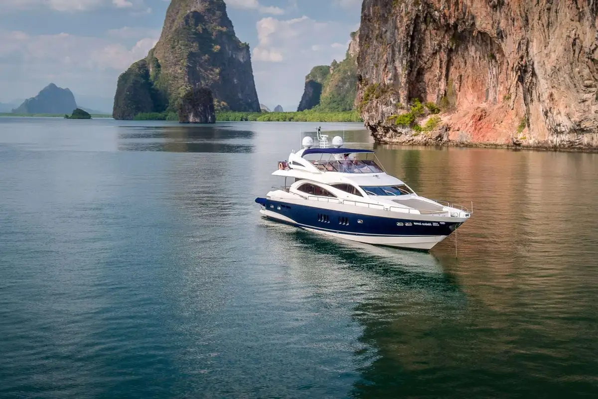 Discover the allure of Thailand’s Phang Nga Bay and the breathtaking limestone pillars and cliffs of Ao Phang Nga National Park. MAJOR AFFAIR, a stunning 28m (91.8ft) Sunseeker yacht, offers you a unique opportunity to enjoy the best of Thailand. Immerse yourself in the beautiful scenery made famous by James Bond and The Man With The Golden Gun. Walk along pristine white sandy beaches with your friends or loved ones then head back to MAJOR AFFAIR to enjoy your evening of relaxing and conversation on this fabulous yacht.