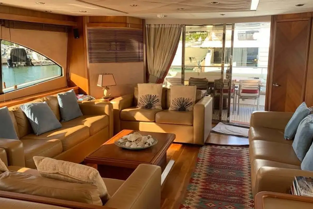 When you’re not taking in the scenery or enjoying time in the water you and your guests can relax in the main saloon. Leather sofas create a sophisticated feel, while the large windows keep the space bright and welcoming. Wherever you choose to cruise on MAJOR AFFAIR and her crew will ensure you have a holiday that will be remembered for years to come.