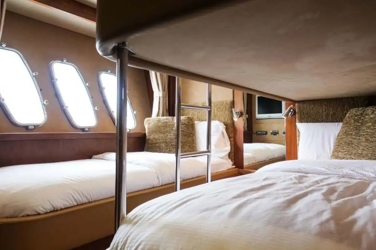 With a beautiful full-beam master suite and a spacious forward double VIP suite you and your special guests have plenty of room to unwind. Two twin guest suites increase the berths on board to accommodate eight people.