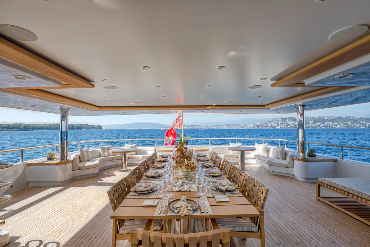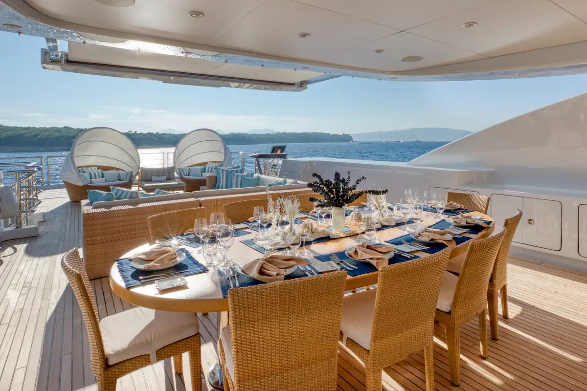 Start your day with a reviving fresh juice on the master suite’s private balcony, followed by a delicious breakfast prepared by MARAYA’s chef just the way you like it, seated at the vast table on the upper deck aft with its elevated views of the surroundings.