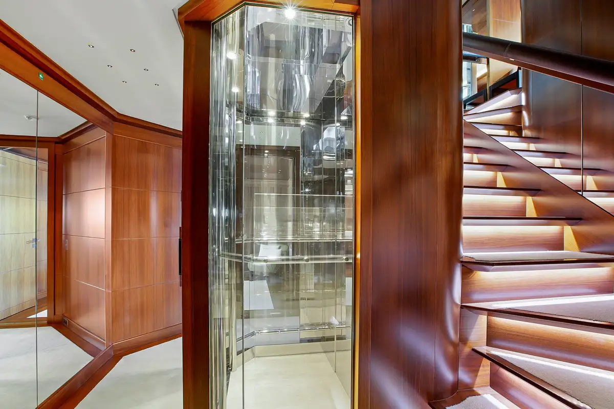 - Elevator serving lower to upper decks